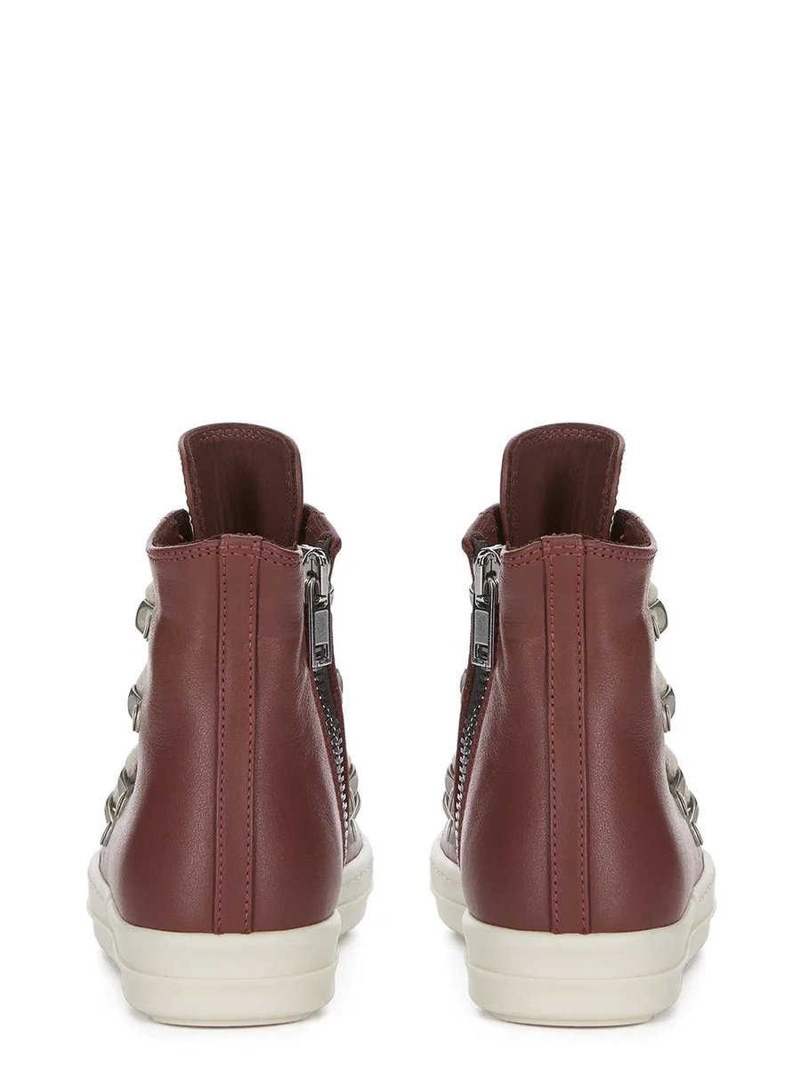 RICK OWENS FW25 CONCORDIANS HEXALACE SNEAKS IN ROSEWOOD/MILK/MILK MOUSSE LEATHER