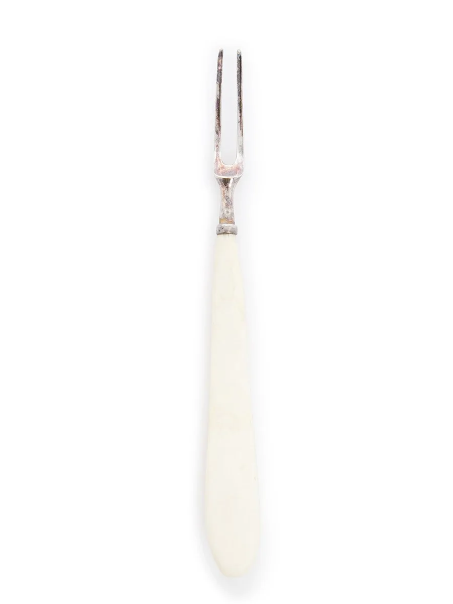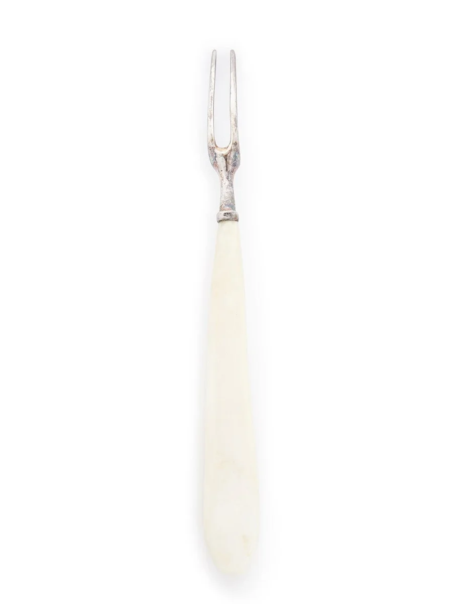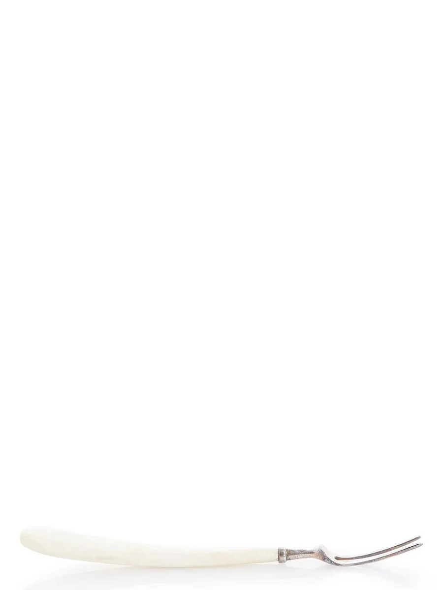 RICK OWENS SNAIL FORK FEATURES A SMALL TWO TINE STERLING TOP, AND A SLIM NATURAL COLOR BONE HANDLE.