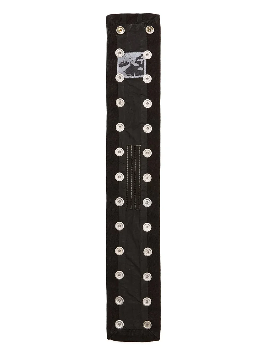 THIS STROBE NECK BAND IS A DENIM STRAP WITH ALL OVER SNAPS, TO BE WORN AROUND THE NECK.