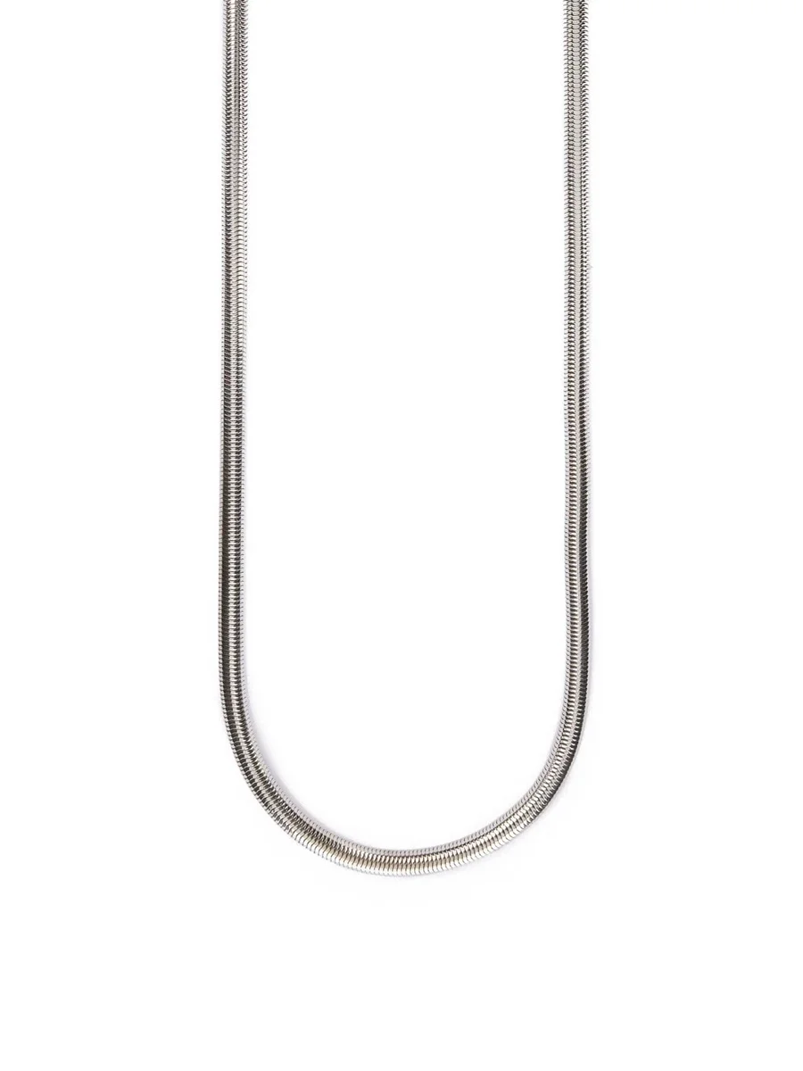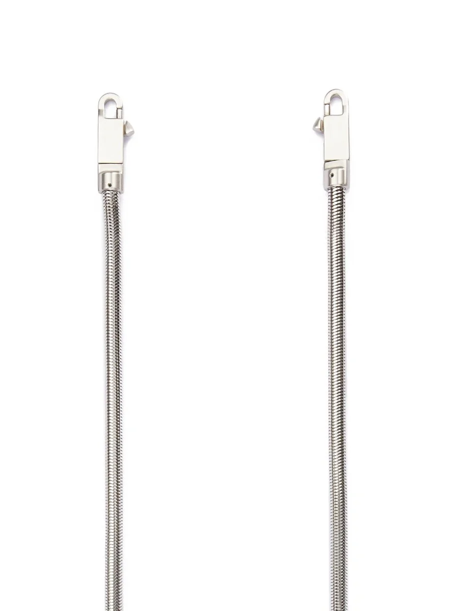 THIS CROSSBODY SNAKE CHAIN IS A LONG STRAP WITH A SNAP HOOK ON EITHER END MADE FROM TUBULAR SNAKE CHAIN. THIS CHAIN IS DESIGNED TO BE SOLD AS AN ADDITION TO ALL OF OUR BAGS WITH DETACHABLE LEATHER STRAPS.