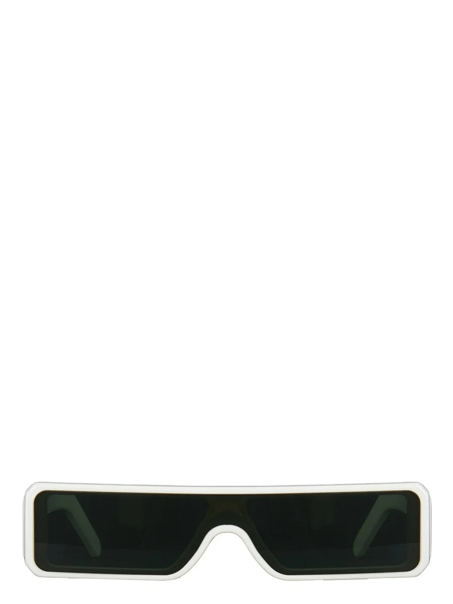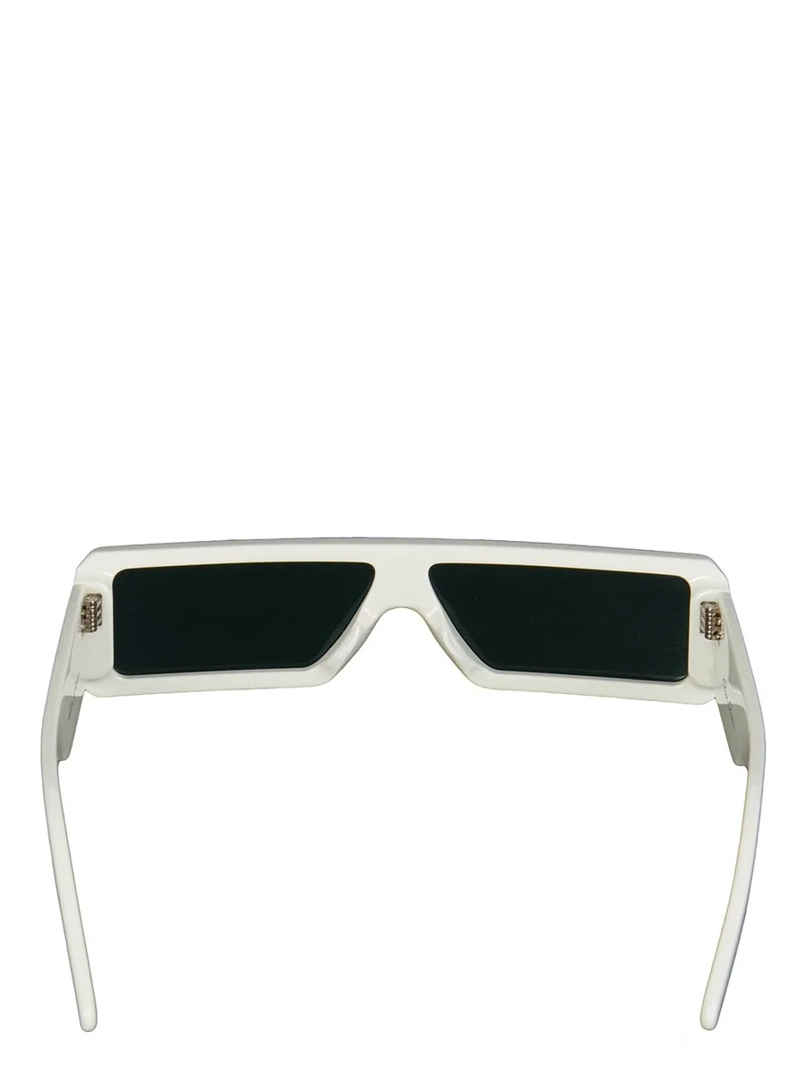 THESE GETH SUNGLASSES FEATURE A SLEEK AND SLIM RECTANGULAR BLACK ACETATE FRAME WITH A SINGLE CUT LENS. THEY HAVE WIDE ARMS WITH THE SIGNATURE TRIO OF SILVER RIVETS ON EACH TEMPLE AND RICK OWENS LOGO ON INSIDE RIGHT.
