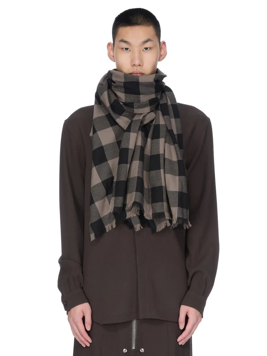 RICK OWENS FW25 CONCORDIANS JUMBO PLAID SCARF IN DUST JUMBO PLAID