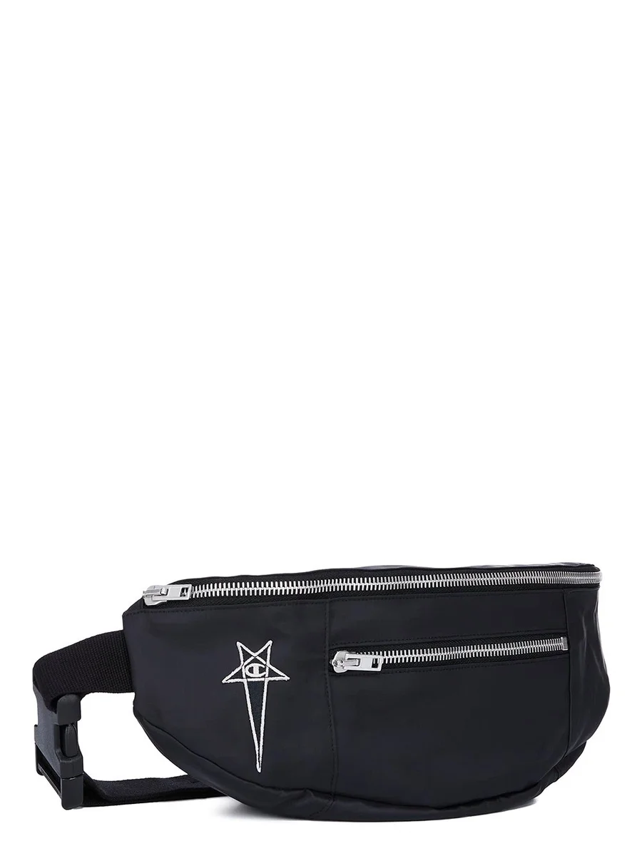 CHAMPION X RICK OWENS SS25 BUMBAG IN BLACK LIGHT NYLON