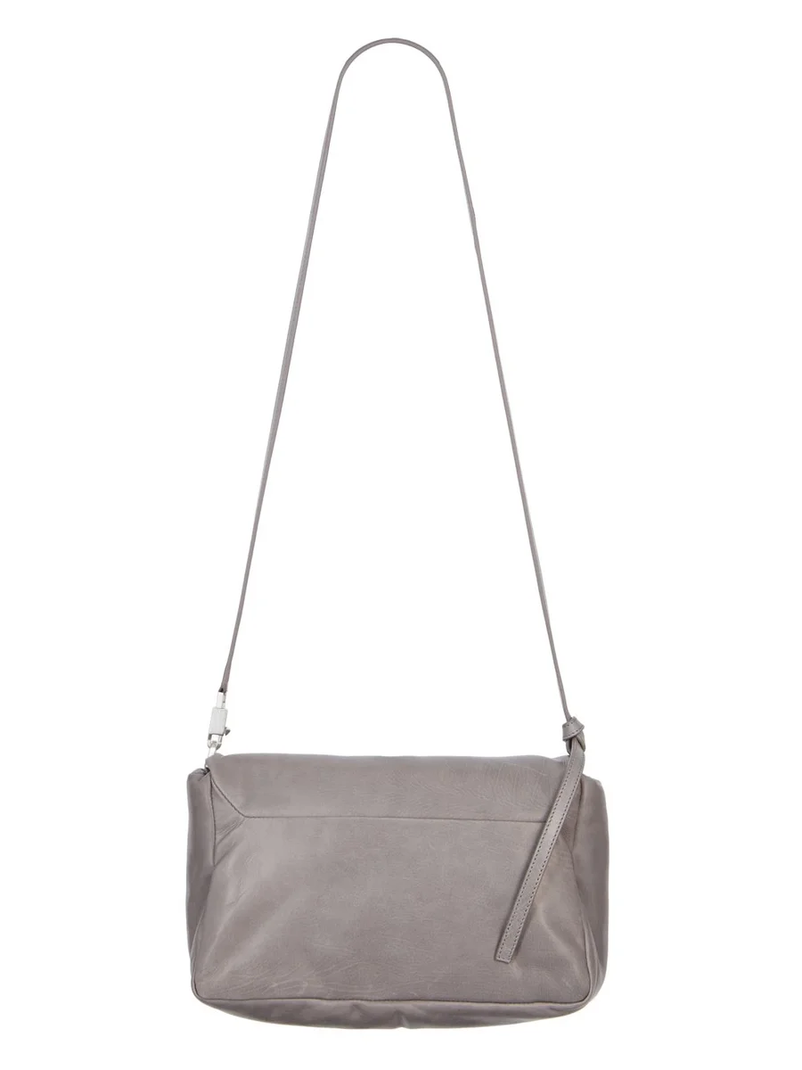 THIS BIG PILLOW GRIFFIN IS A LARGE RECTANGULAR SOFT PADDED BAG WITH A FRONT FLAP WITH A PALLADIUM INDENTED EASY-GRIP BEVEL AND MAGNETIC CLOSURE. IT HAS ONE PONTICELLO D-LOOP ON FRONT, AN INNER POCKET WITH 9 CARD SLOTS AND A SECOND INNER ZIPPERED POCKET. IT FEATURES A LONG THIN LEATHER STRAP WITH A PALLADIUM TONE BRASS HOOK WHICH TIES ON ONE SIDE, OR CAN BE DETACHED TO CREATE A CLUTCH.