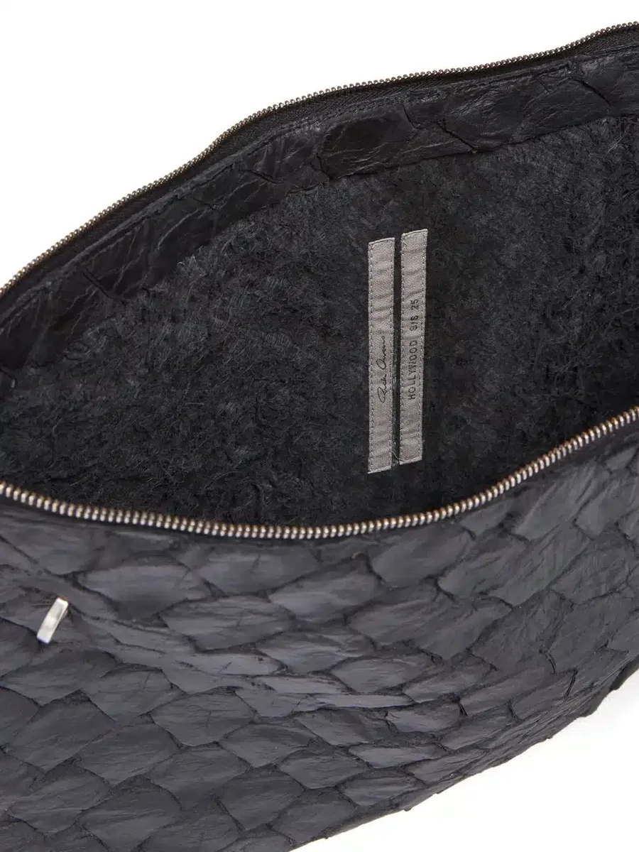 RICK OWENS FW25 CONCORDIANS RUNWAY BEACH BAG IN BLACK WAXY PIRARUCU
