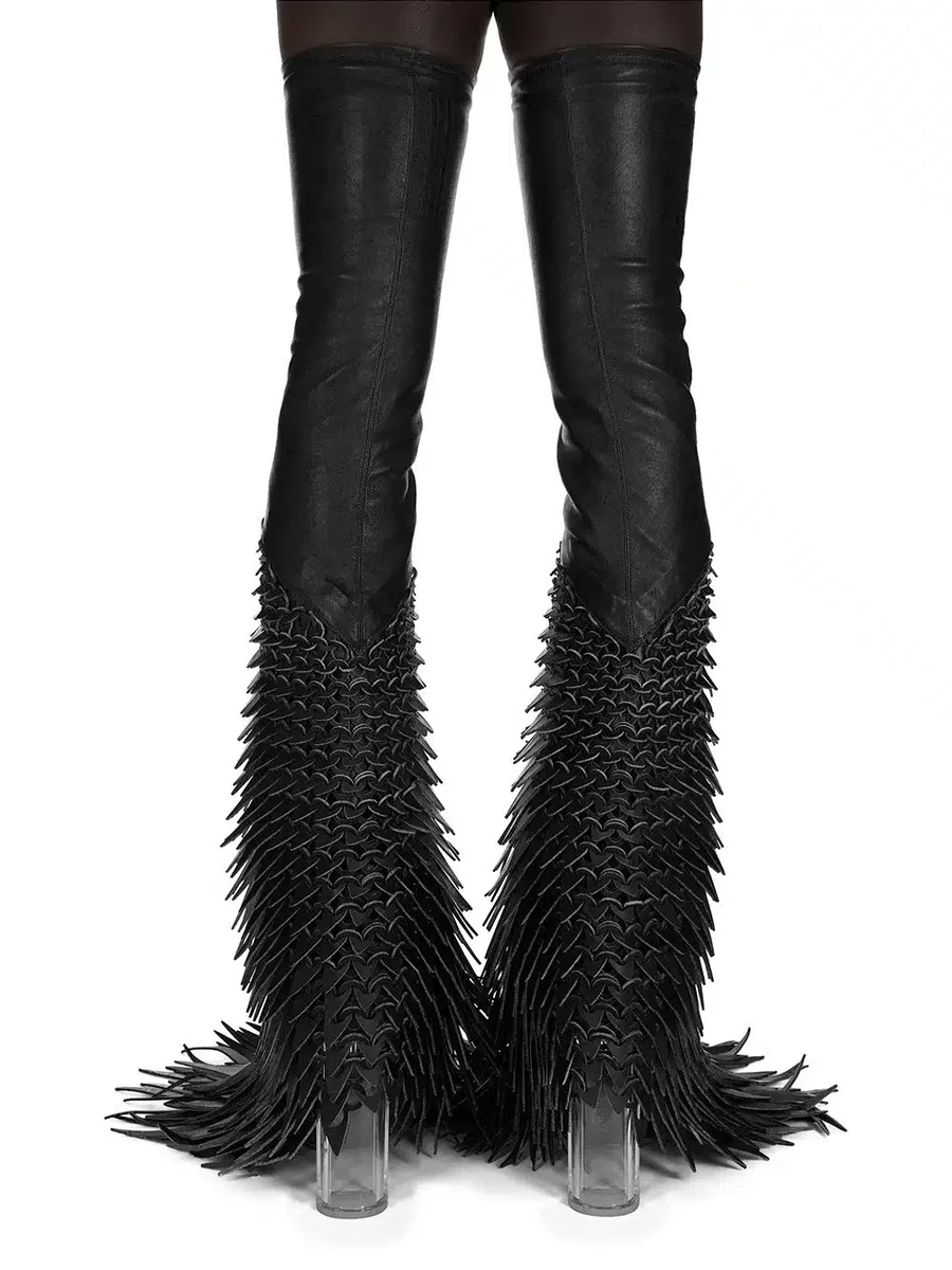 RICK OWENS FW25 CONCORDIANS RUNWAY CHAIN MAIL FOR TACO KISS IN BLACK STRETCH LAMB LEATHER AND GROPPONE COW LEATHER