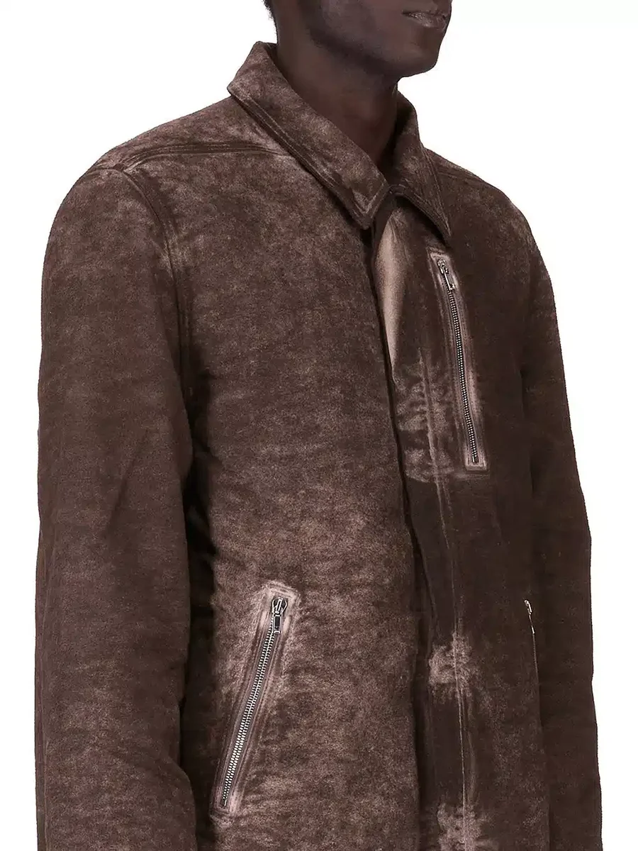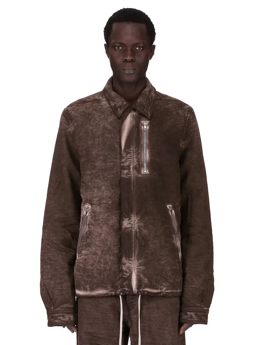 DRKSHDW FW25 CONCORDIANS CONCEALED ZIPFRONT JKT IN DRKDUST BRUSHED COTTON.