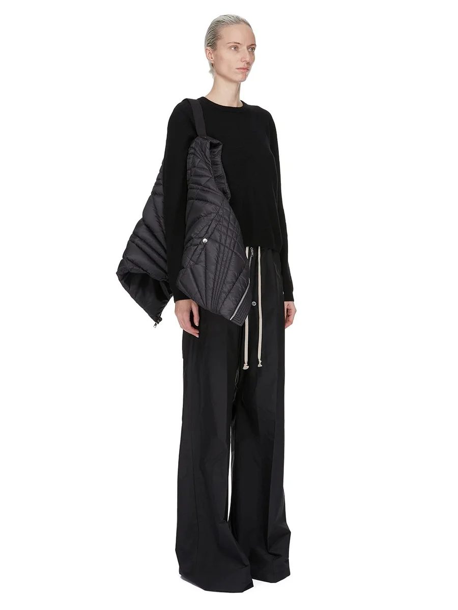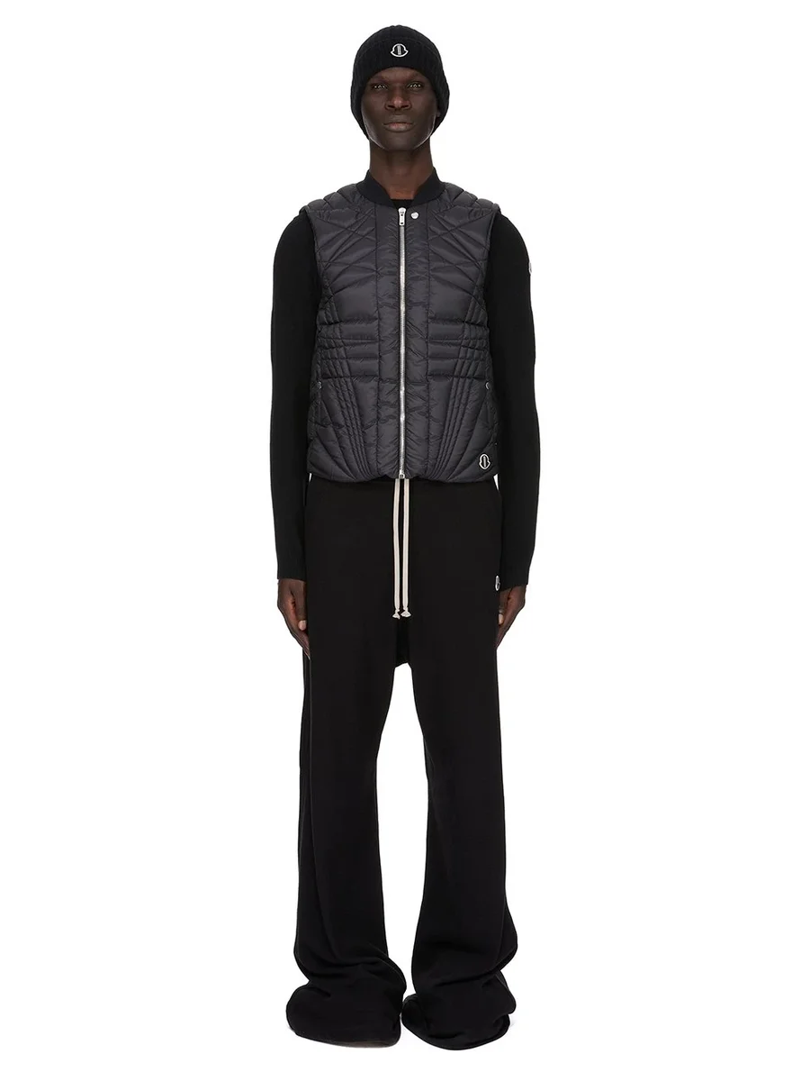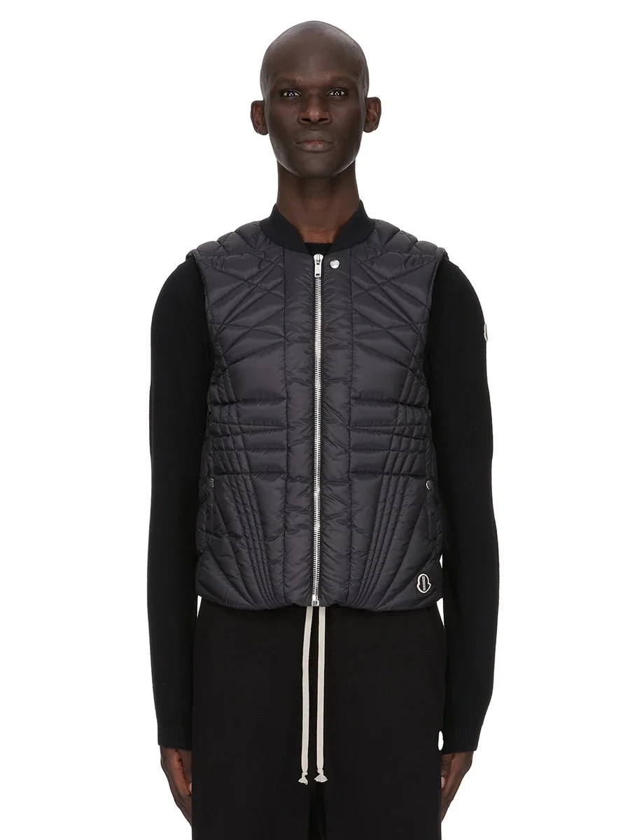 MONCLER +RICK OWENS FW24 MEGAPENTA FLIGHT VEST IN BLACK RECYCLED LONGUE SAISON WITH RADIANCE QUILTING