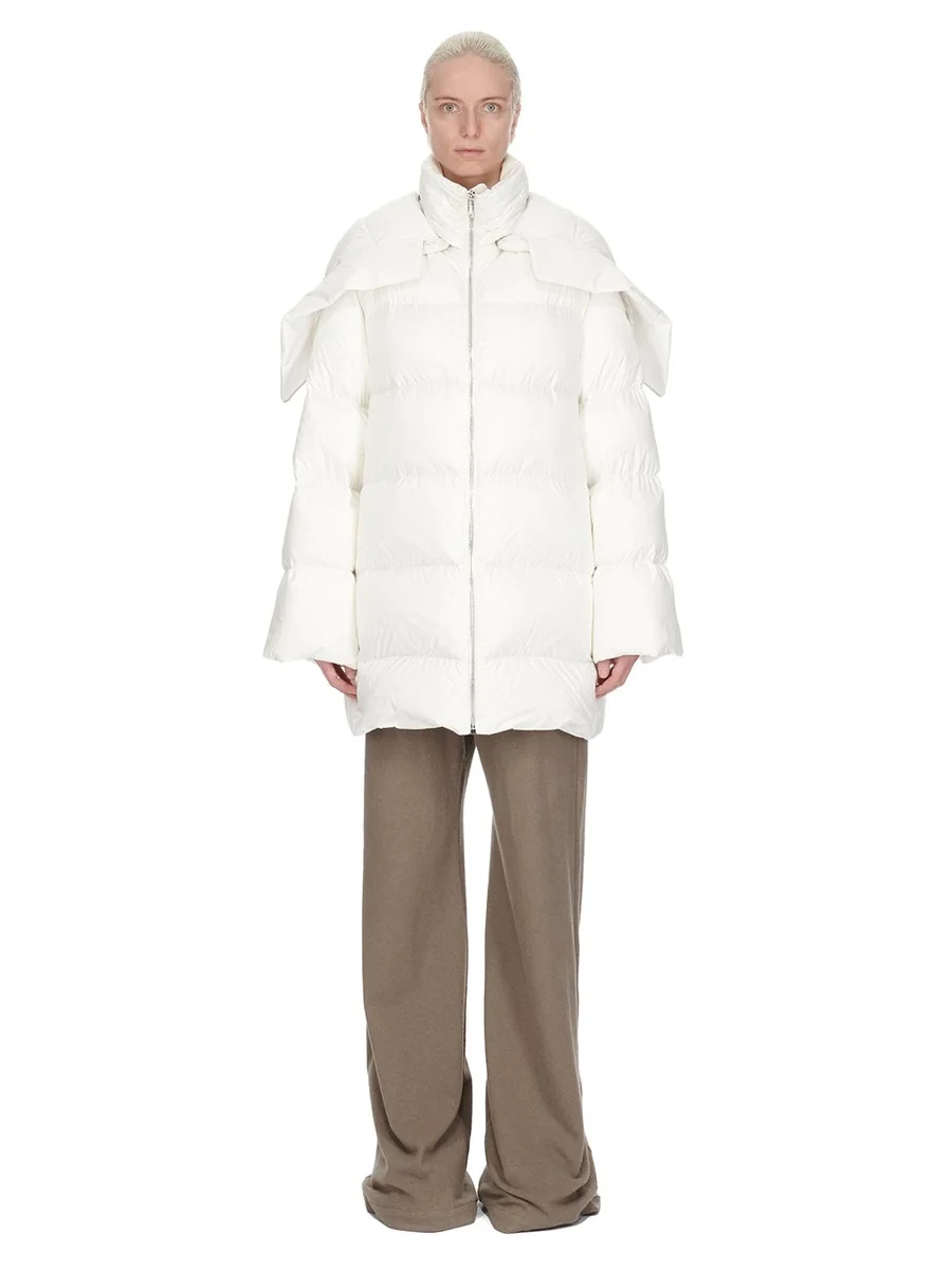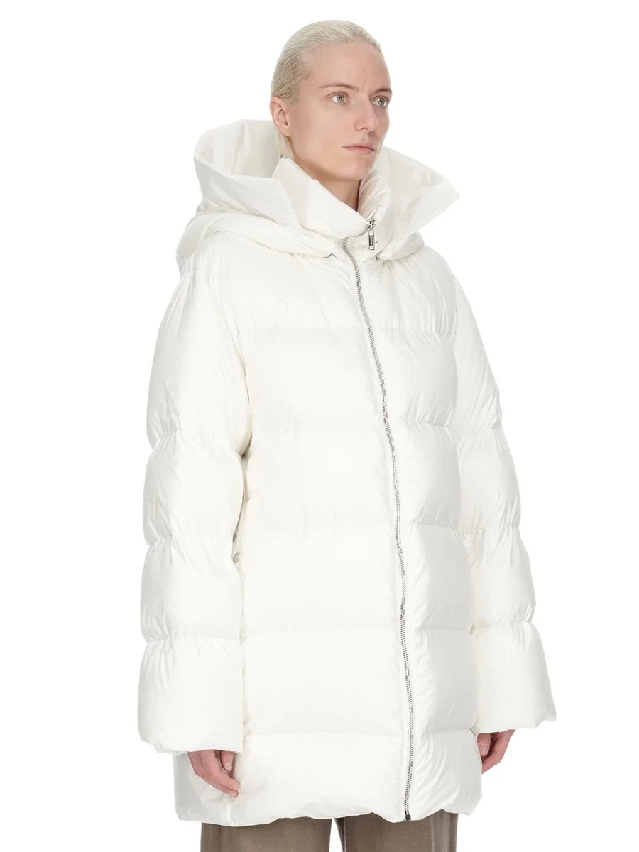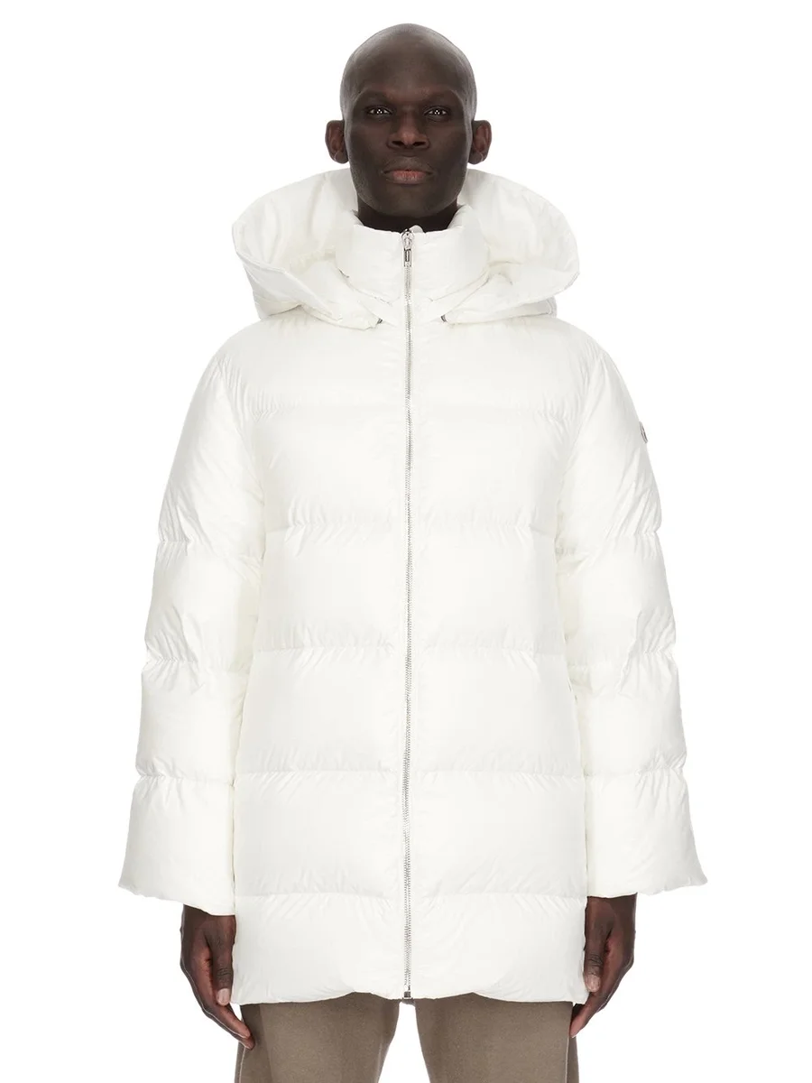 MONCLER +RICK OWENS FW24 HOODED CYCLOPIC COAT IN MILK RECYCLED LONGUE SAISON