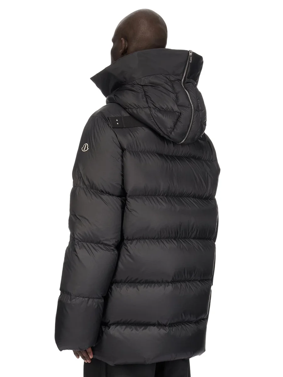 MONCLER + RICK OWENS FW24 HOODED CYCLOPIC COAT IN BLACK RECYCLED LONGUE SAISON