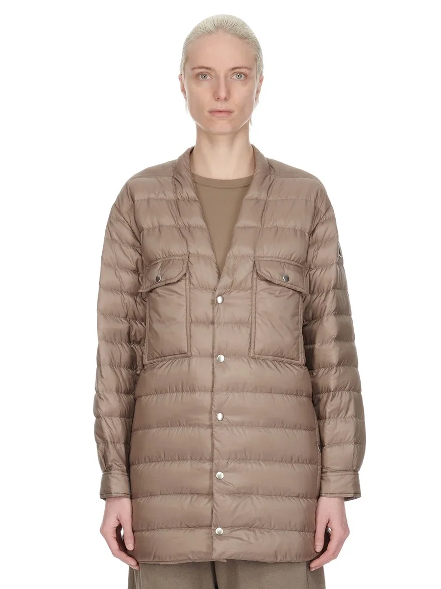 MONCLER +RICK OWENS FW24 OUTERSHIRT IN DUST RECYCLED LONGUE SAISON