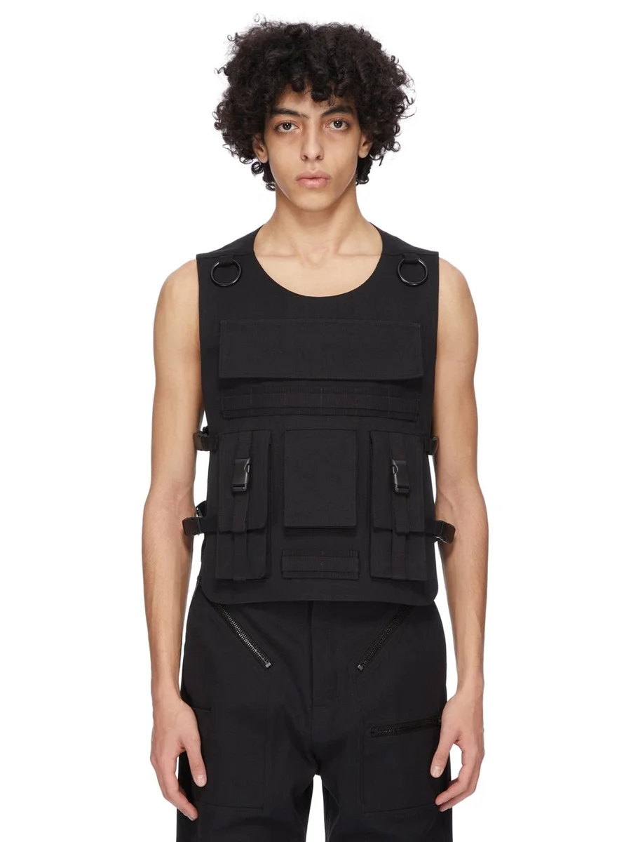 RICK OWENS FW25 CONCORDIANS BONOTTO CAPSULE AMMO VEST IN BLACK COTTON WHIPCORD