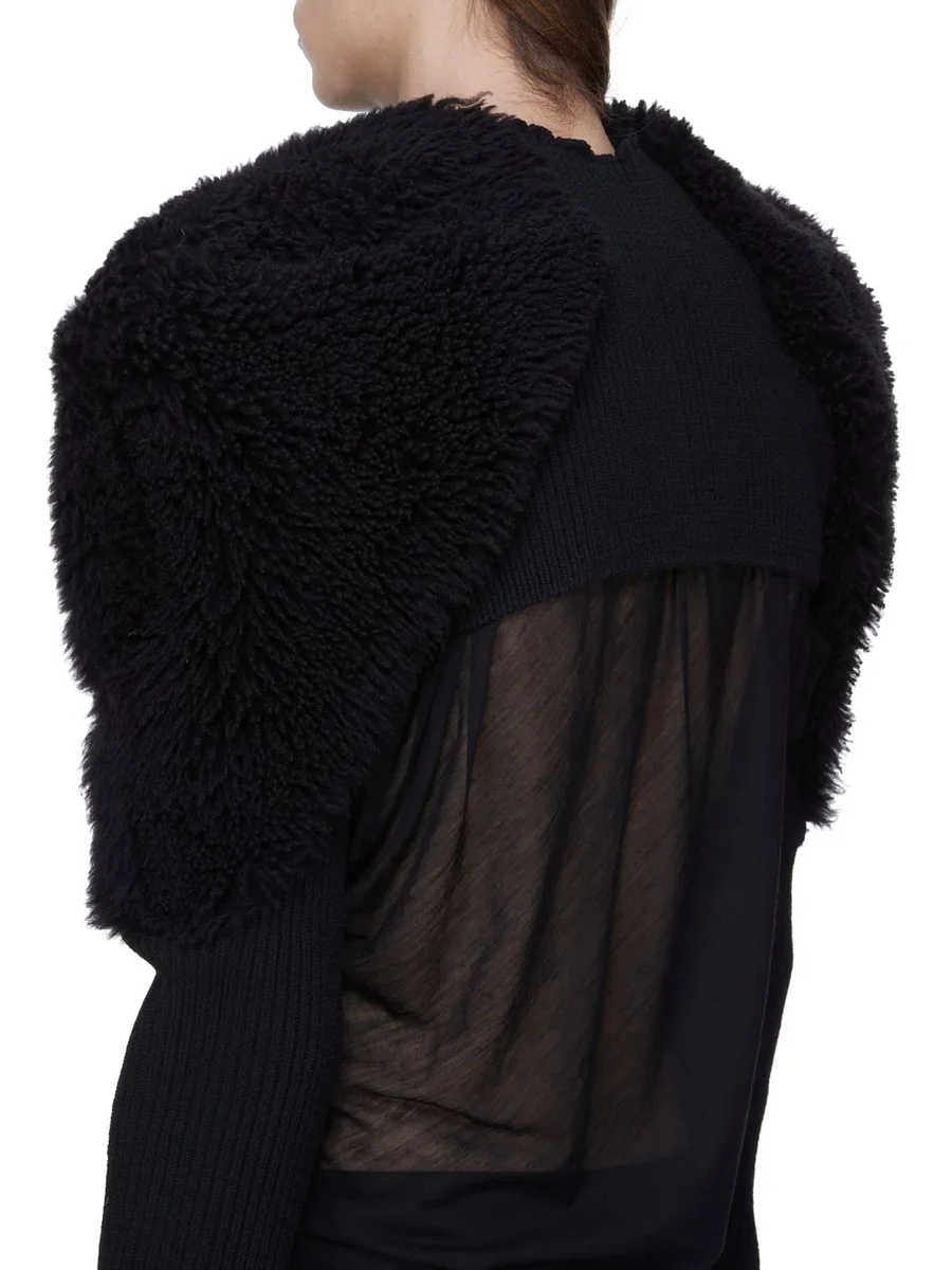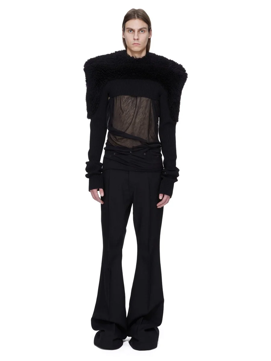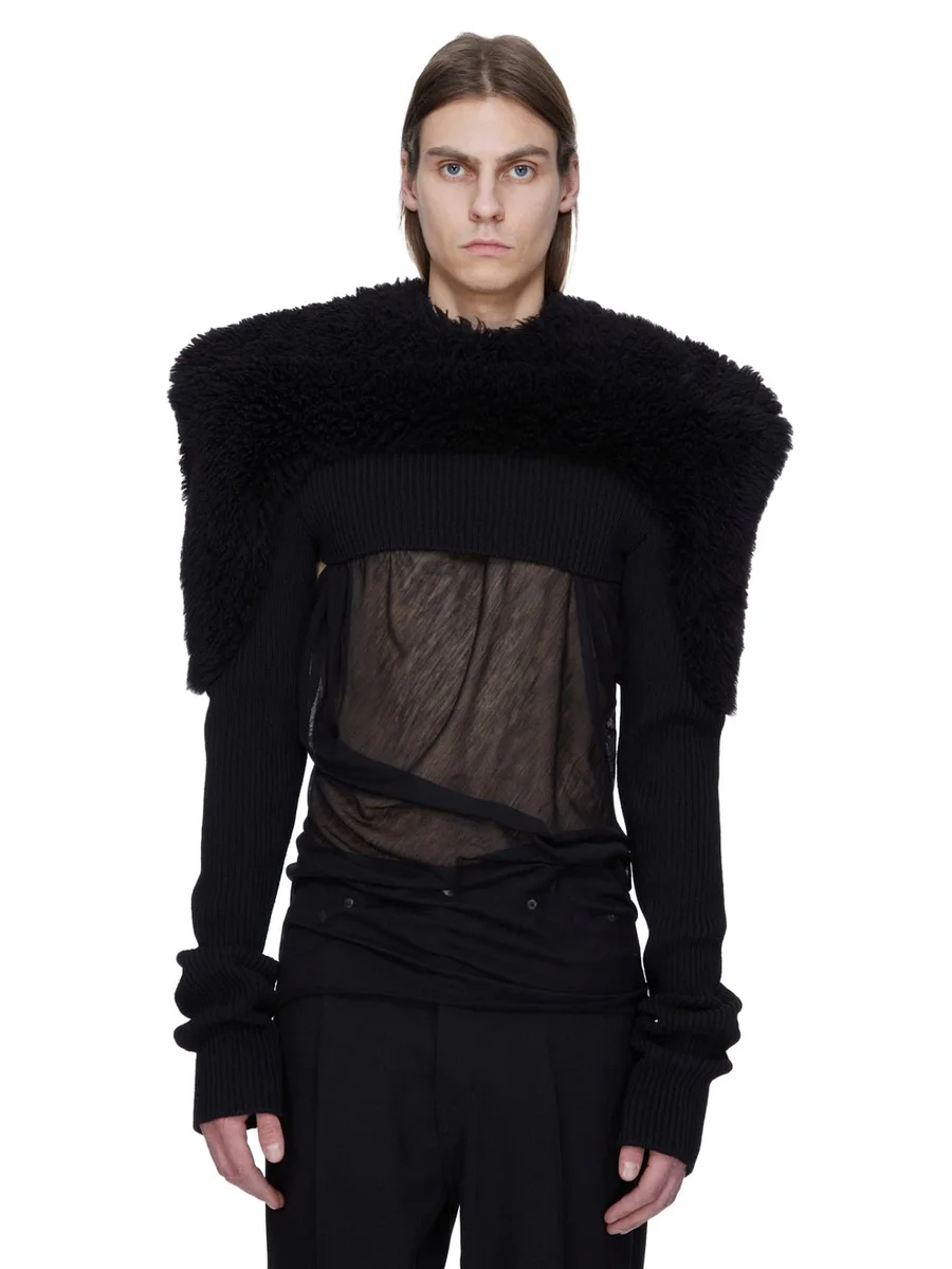 RICK OWENS FW25 CONCORDIANS RUNWAY TIGHT PULLOVER JKT IN BLACKCURLY SHEARLING