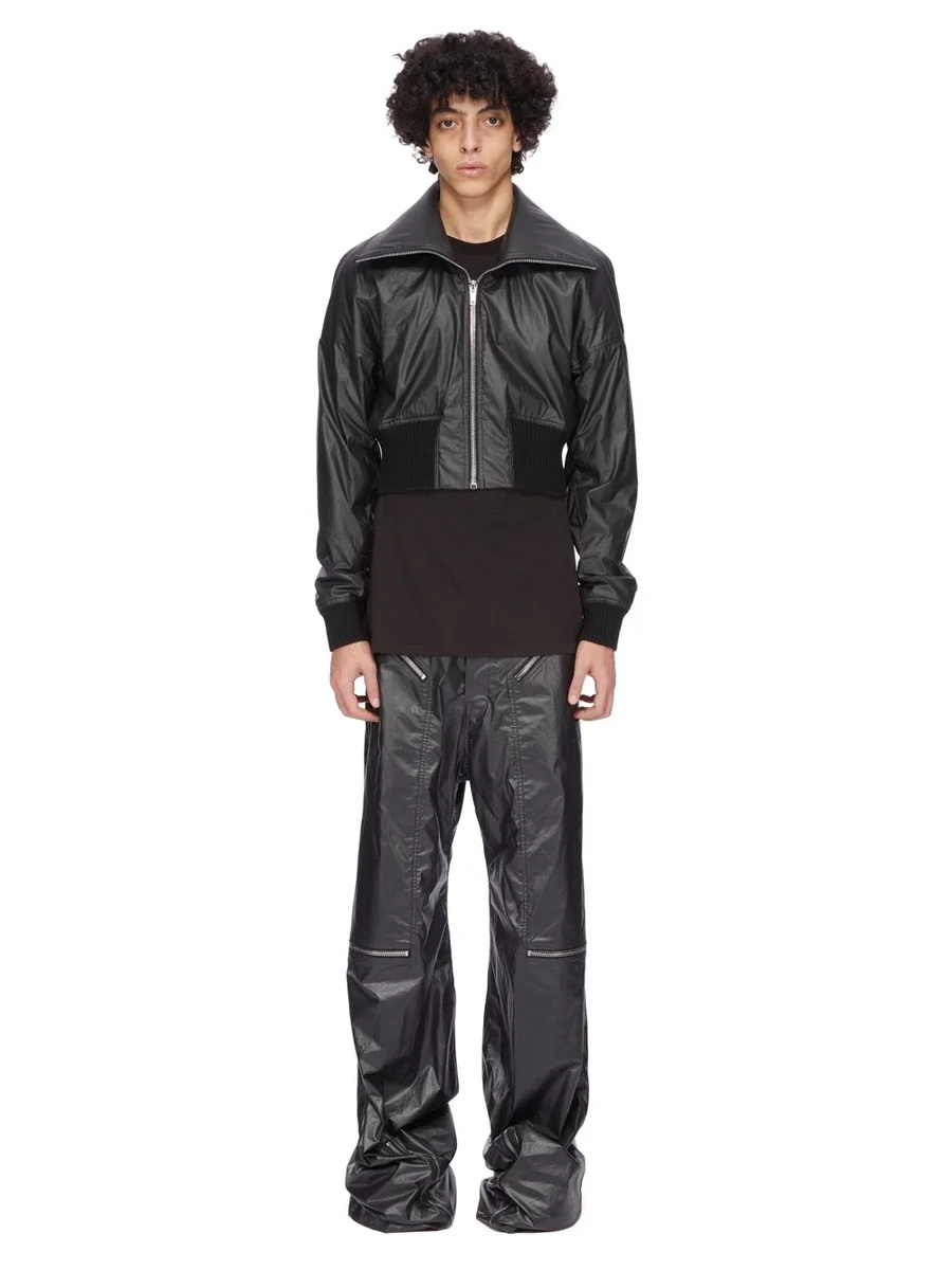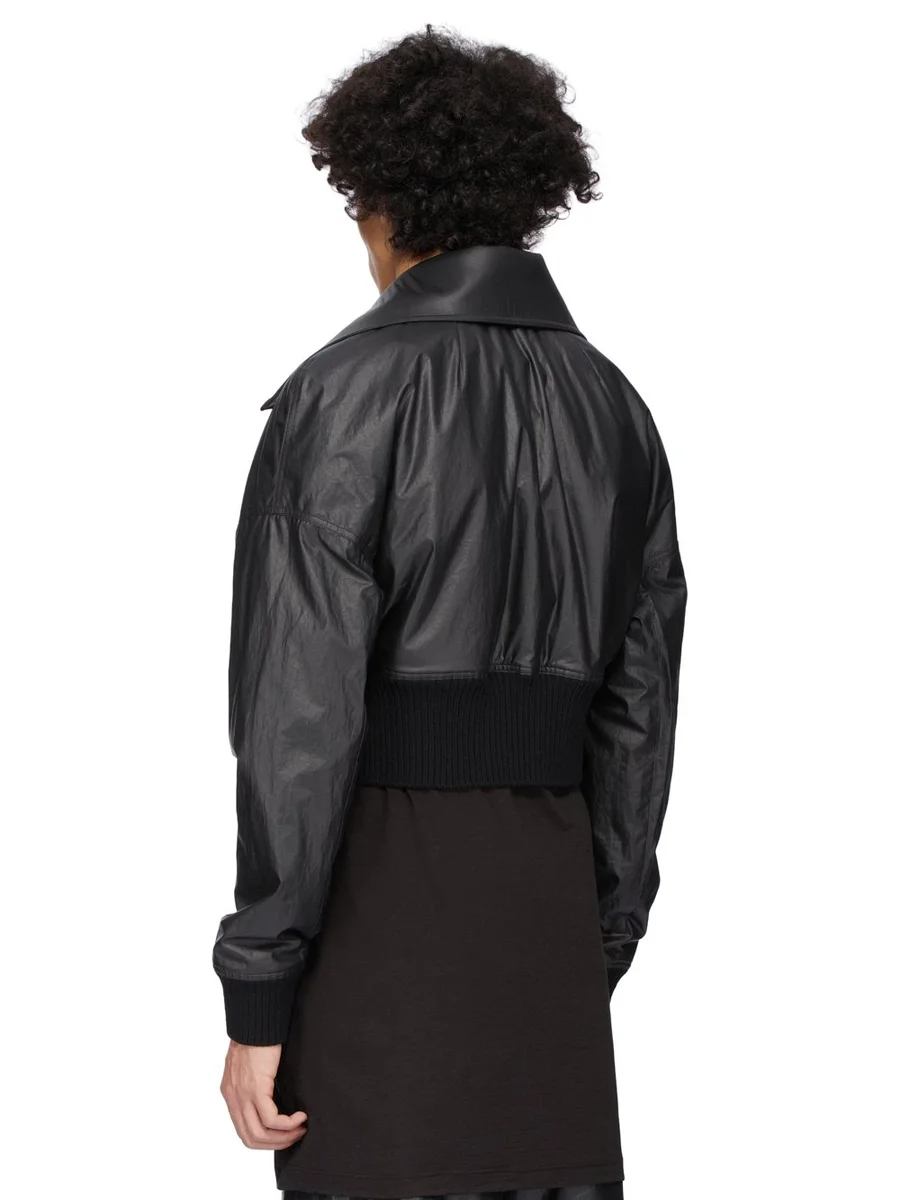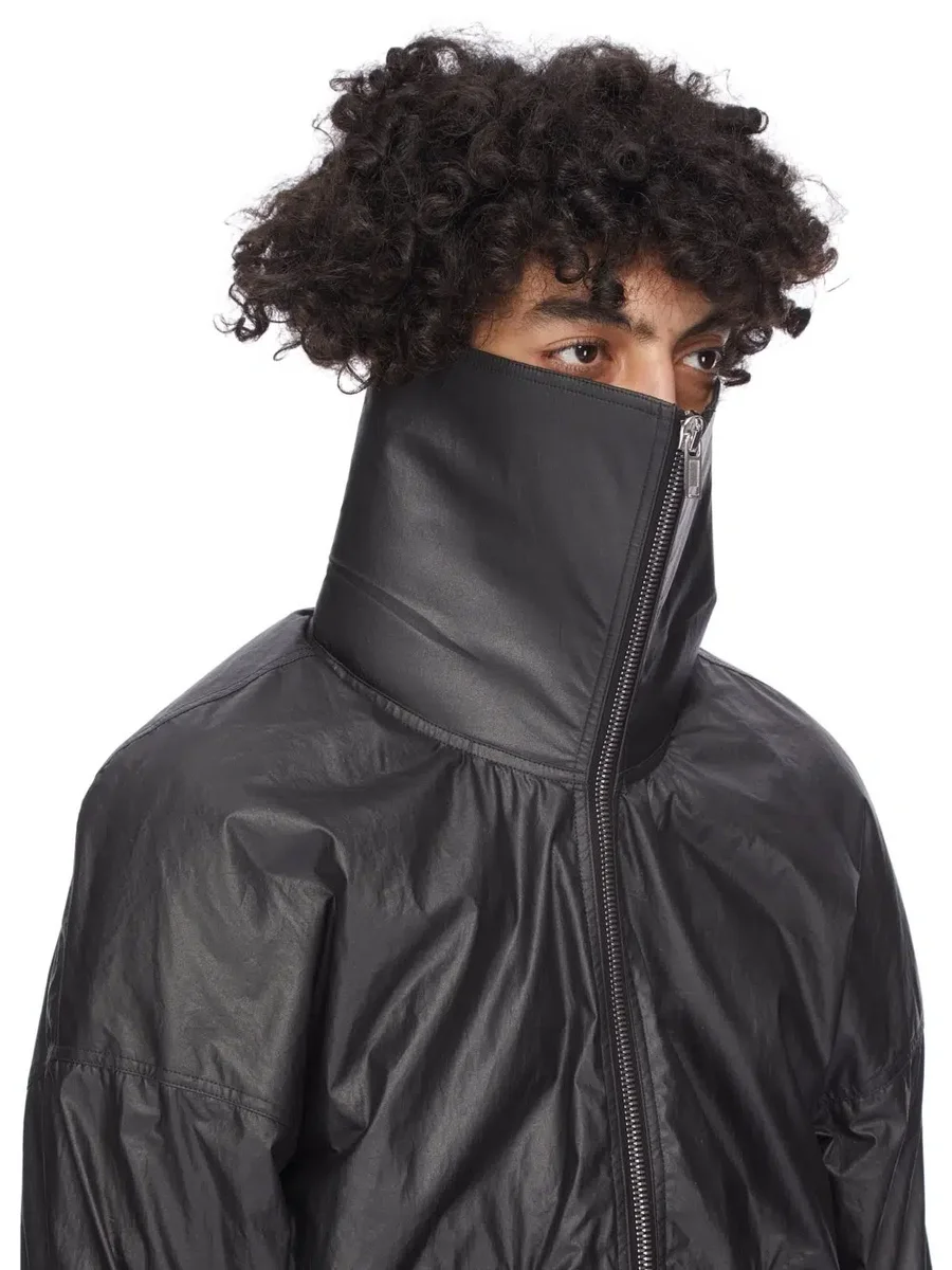 RICK OWENS FW25 CONCORDIANS RUNWAY DRACUCOLLAR JKT IN BLACK COATED POPLIN