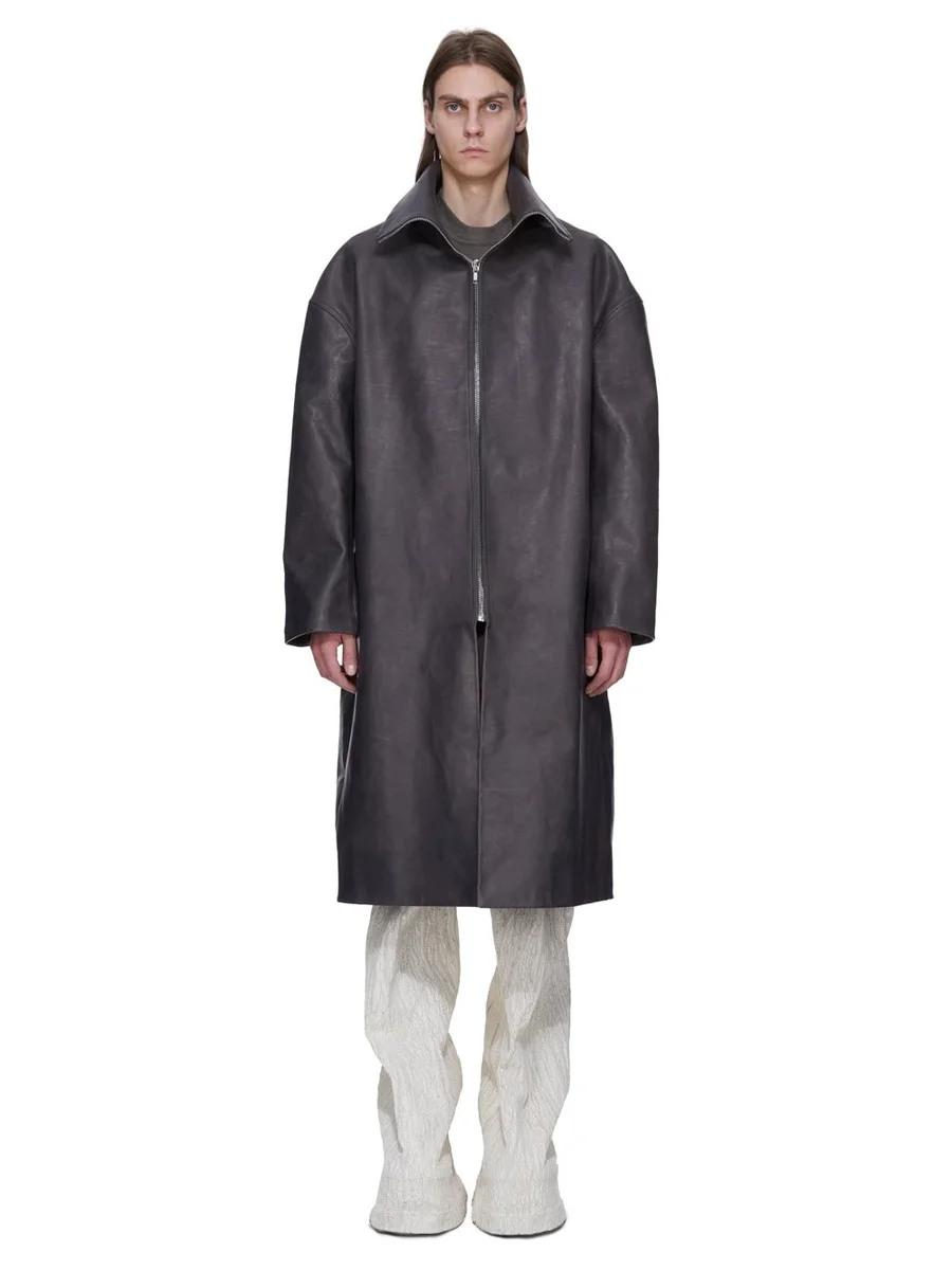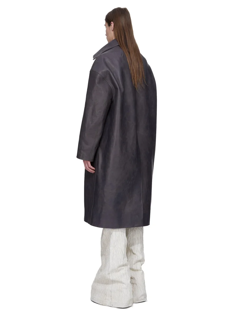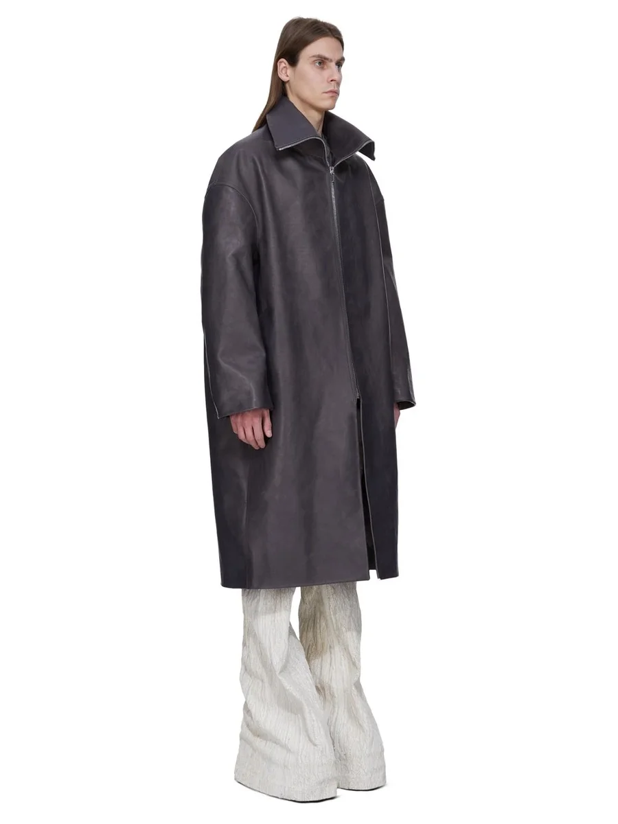 RICK OWENS FW25 CONCORDIANS RUNWAY DRACUCOLLAR COAT IN DARKDUST WASHED CALF LEATHER