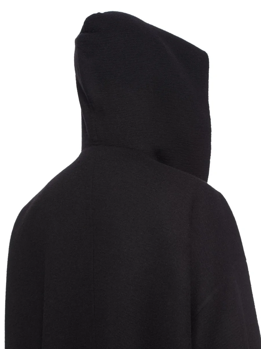 THIS LS KAFTAN KNEE IS KNEE LENGTH WITH LONG, WIDE SLEEVES. IT HAS A LARGE HOOD WITH A V NECK AND SEAM RUNNING DOWN THE CENTRE FRONT AND BACK. IT IS A VOLUMINOUS KAFTAN SHAPE, WITH A WIDE SHOULDER FALLING INTO A DROPPED ARMHOLE.