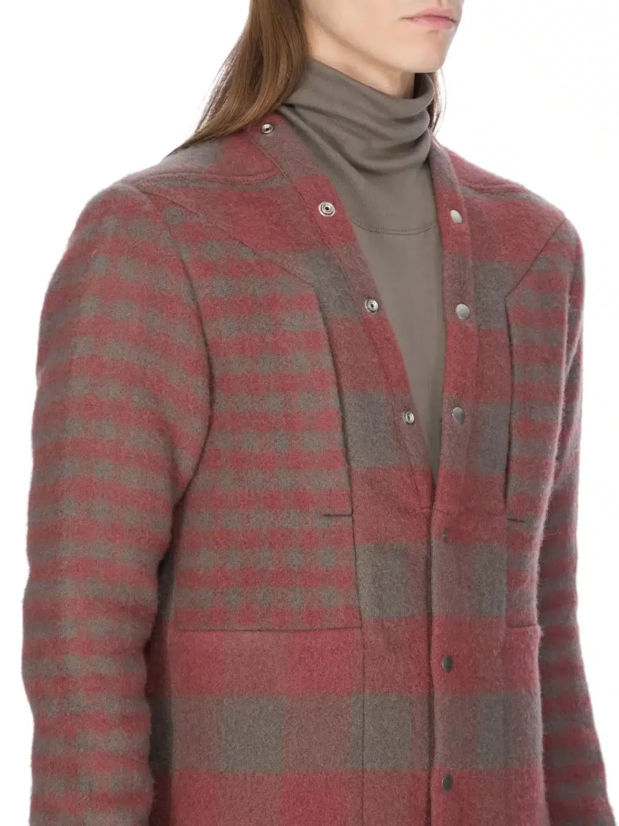 RICK OWENS FW25 CONCORDIANS LARRY FOGPOCKET SHIRT IN ROSEWOOD PLAID JUMBO PLAID AND MINI PLAID