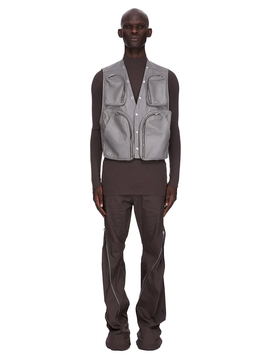 RICK OWENS FW25 CONCORDIANS CARGO VEST IN WASHED INDIGO WAXY LAMB LEATHER