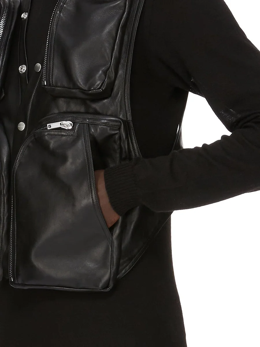 RICK OWENS FW25 CONCORDIANS CARGO VEST IN BLACK WAXY LAMB LEATHER