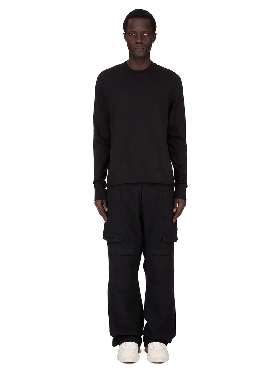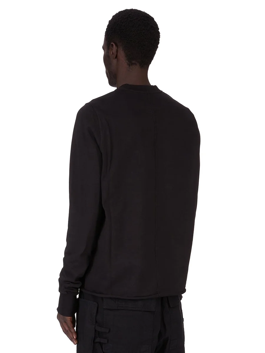 THIS CREWNECK SWEAT IS BELOW HIP LENGTH WITH LONG SLEEVES. IT HAS A RIBBED CREWNECK, CUFFS AND A RAW CUT HEM. IT FEATURES THE SIGNATURE LEVEL SHOULDER SEAMS AND SINGLE SEAM RUNNING DOWN THE CENTRE BACK SPINE.