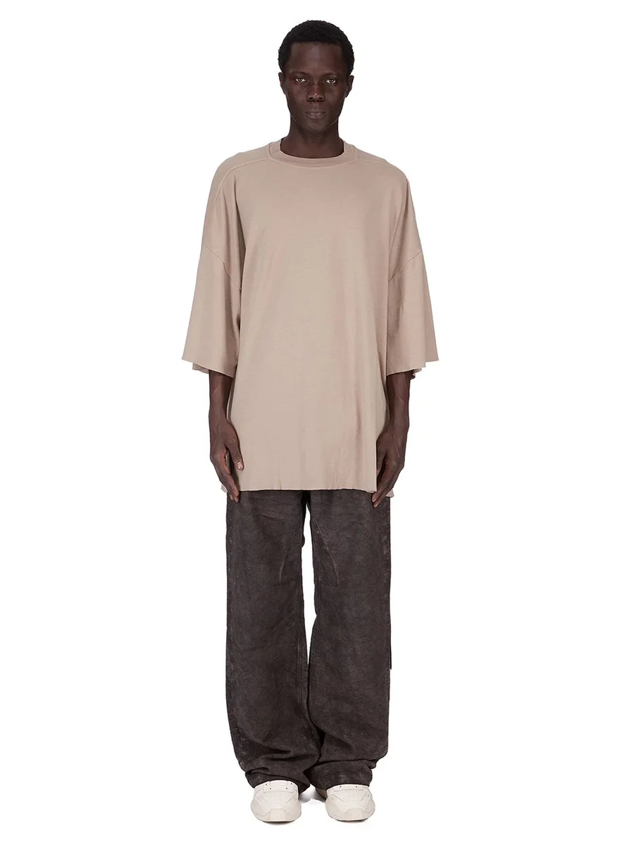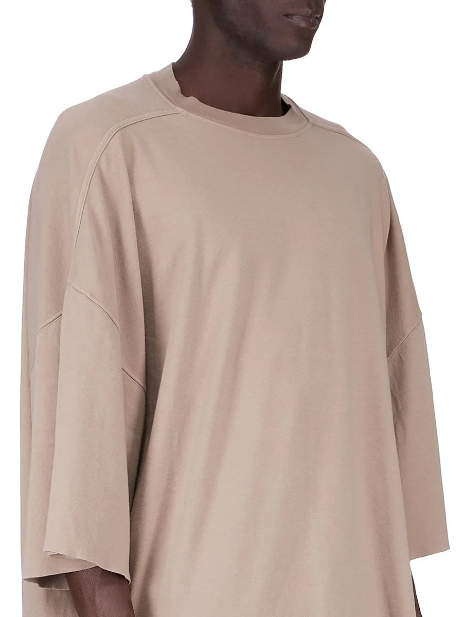 THIS TOMMY T IS BELOW HIP LENGTH WITH A JUMBO OVERSIZED FIT. IT HAS WIDE, SHORT SLEEVES WITH A DROPPED ARMHOLE AND A RIBBED CREWNECK. IT FEATURES SIGNATURE FRONT LEVEL SHOULDER SEAMS AND A CENTRE BACK SEAM.