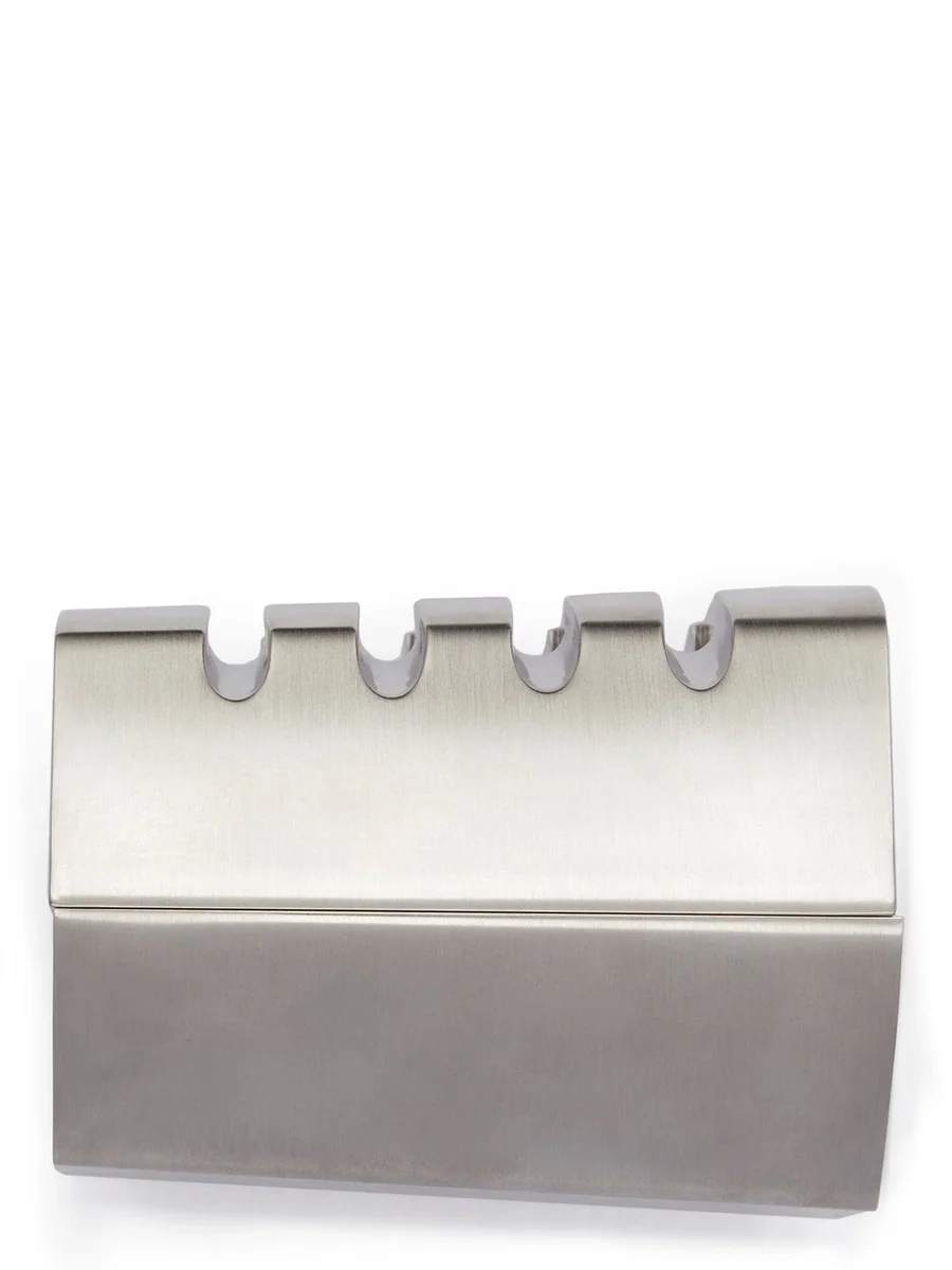 THIS GRILL CUFF IS A RIGID METAL BRACELET WITH GRILL OPENINGS AND A MAGNET CLOSURE. IT HAS THE RICK OWENS LOGO ENGRAVED ON THE TOP SIDE. THESE JEWELLERY PIECES ARE CRAFTED WITH THE INDIVIDUAL HANDWORK OF THE ARTISAN, MAKING EACH PIECE UNIQUE.