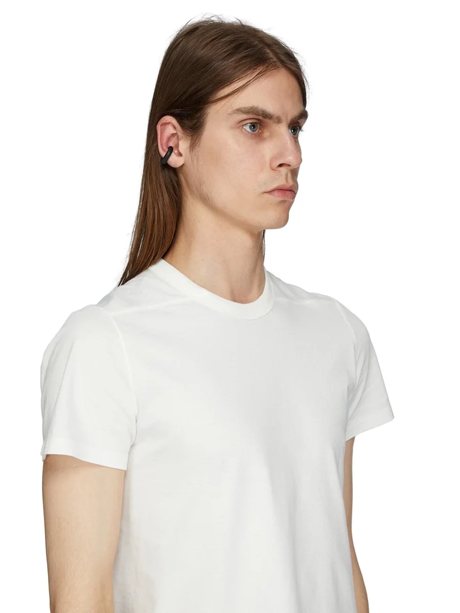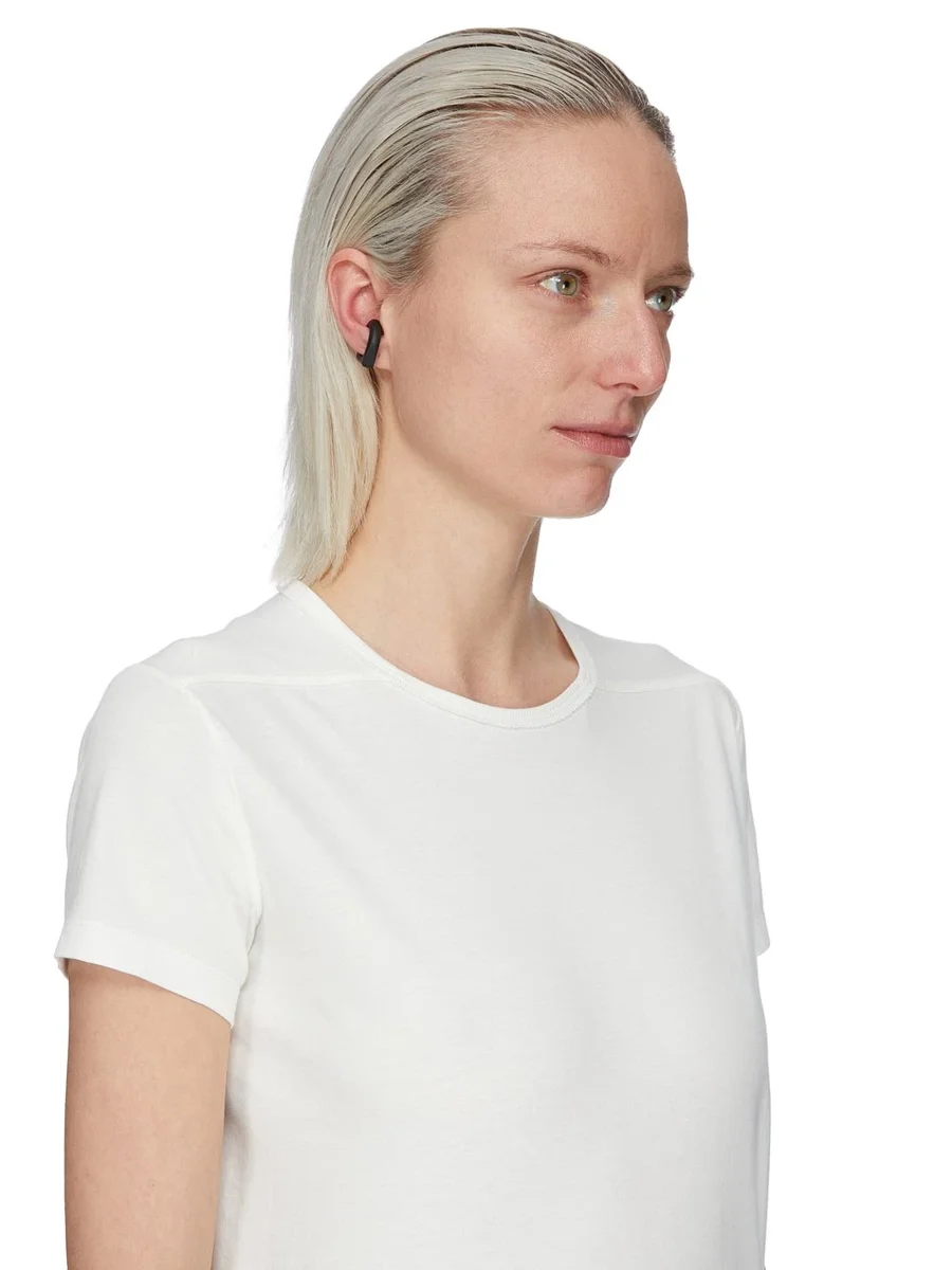 THIS ROUND PRONG EARCUFF IS A DOUGHNUT SHAPED CUFF WITH TWO BEVELED EDGES INSPIRED BY THE PRONG BENCH FROM THE RICK OWENS FURNITURE COLLECTION. IT HAS THE RICK OWENS LOGO ENGRAVED ON THE SIDE.