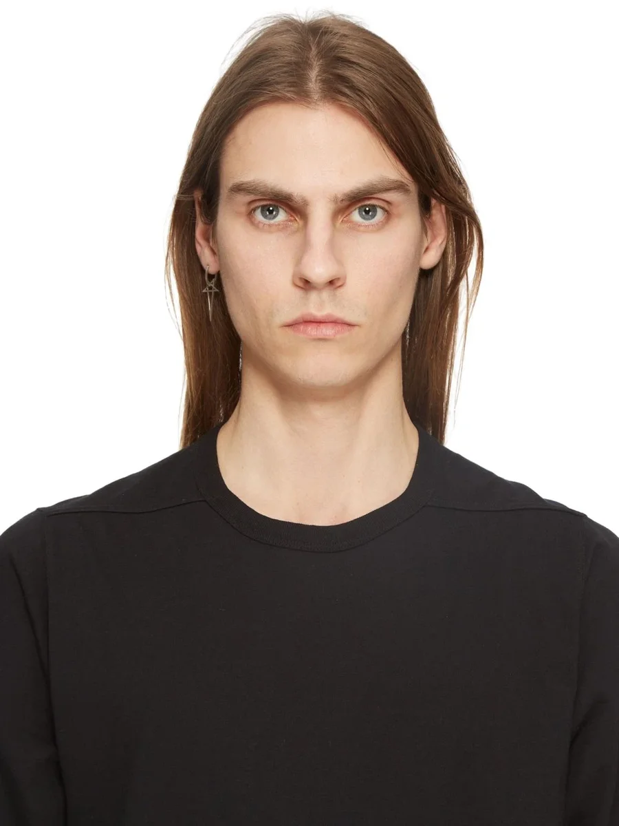 THIS PENTAGRAM EARRING HAS A SMALL PENTAGRAM HANGING FROM AN OVAL SHAPED EARRING. IT HAS THE RICK OWENS LOGO ENGRAVED ON THE SIDE FACE.