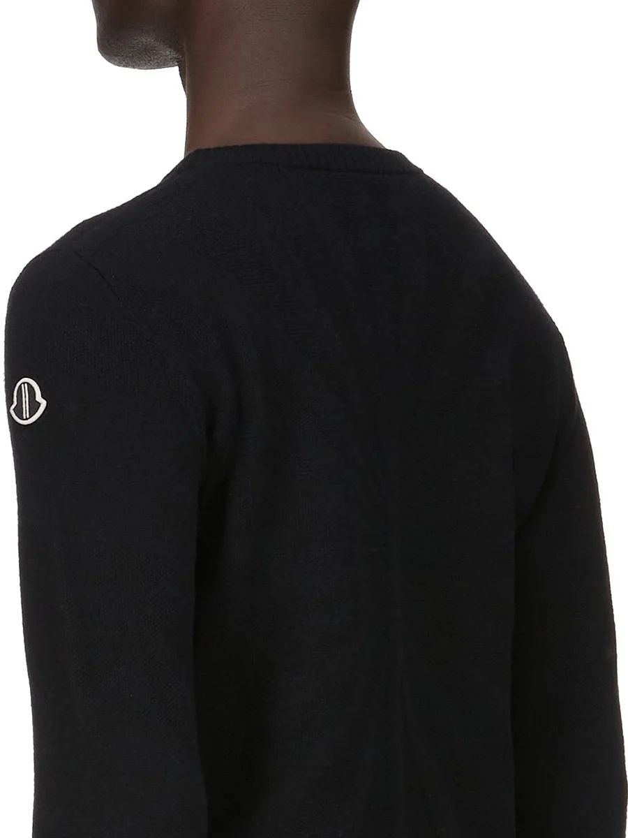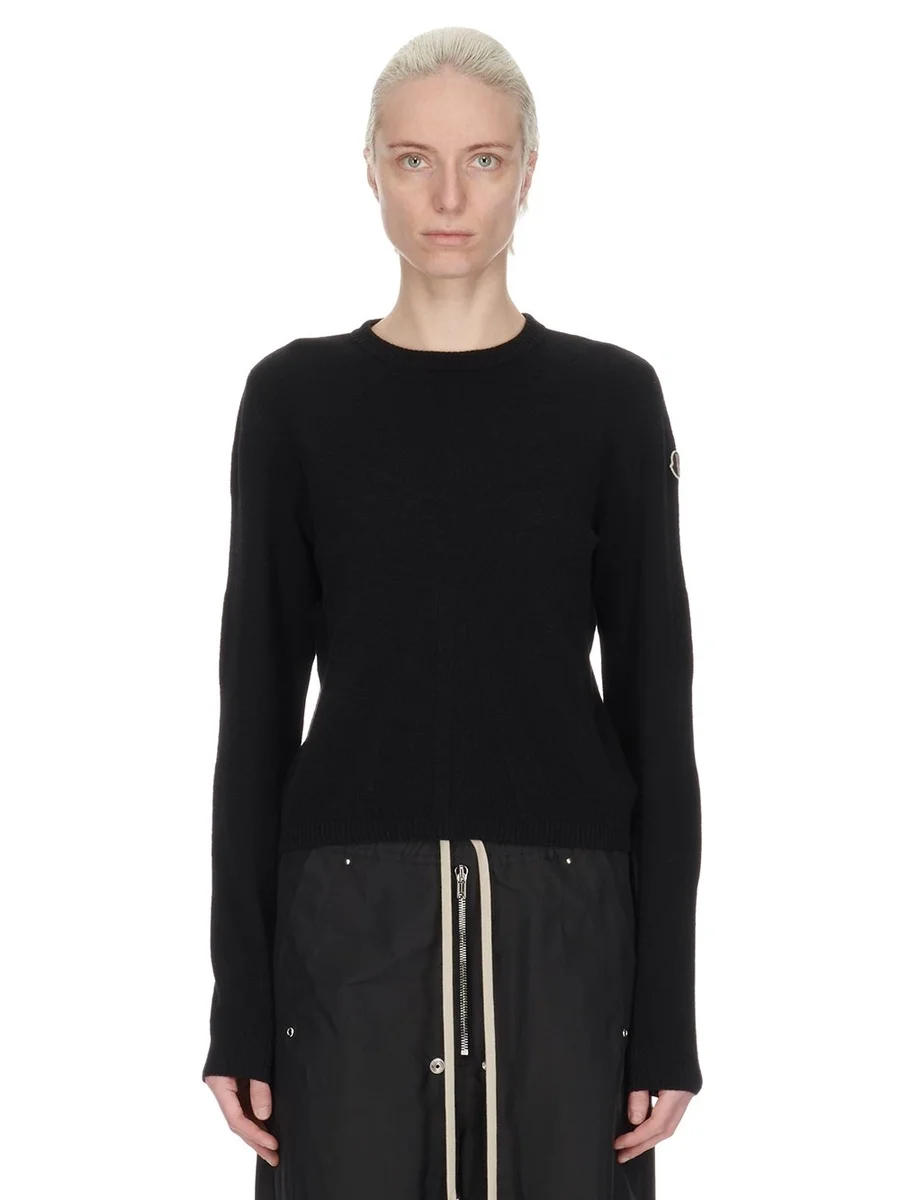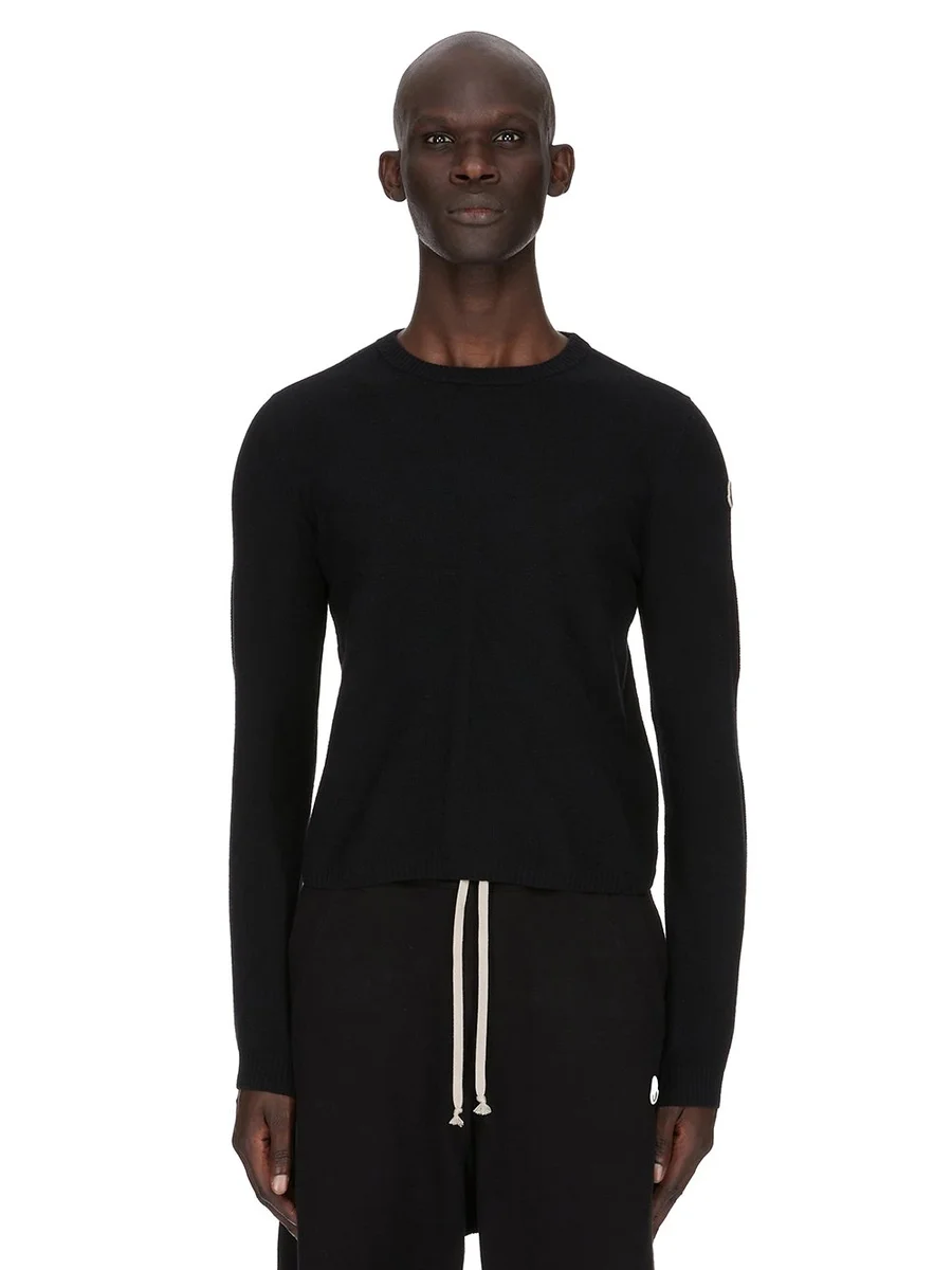MONCLER +RICK OWENS FW24 BIKER ROUND NECK IN BLACK WOOL-CASHMERE BLEND