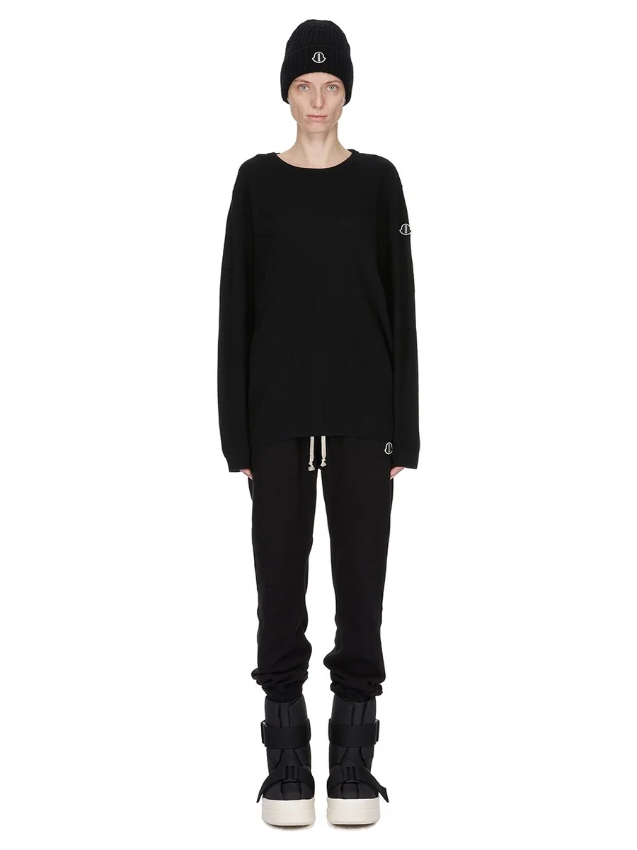 MONCLER +RICK OWENS FW24 JUMBO ROUND NECK IN BLACK WOOL-CASHMERE BLEND