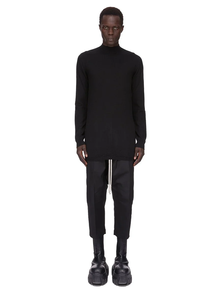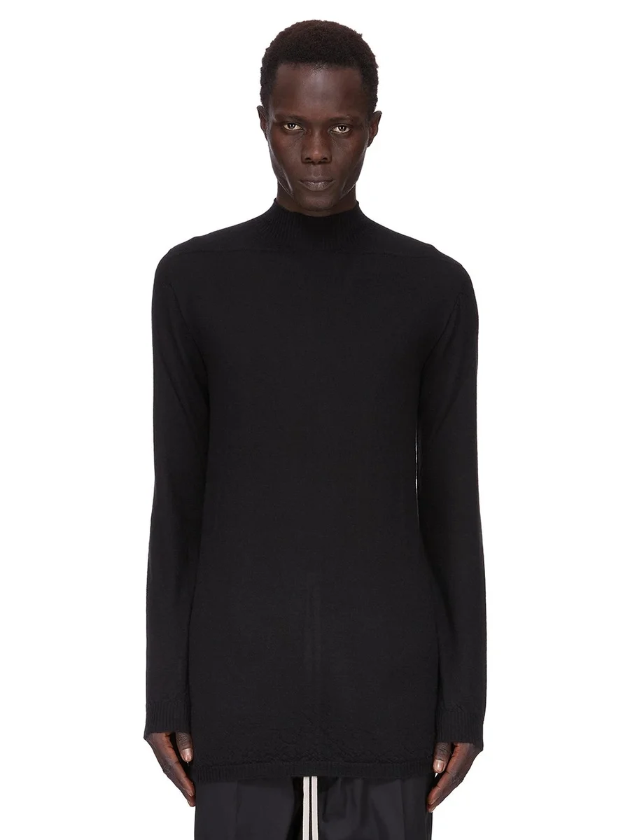 RICK OWENS FOREVER LEVEL LUPETTO SWEATER IN BLACK LIGHTWEIGHT RASATO KNIT