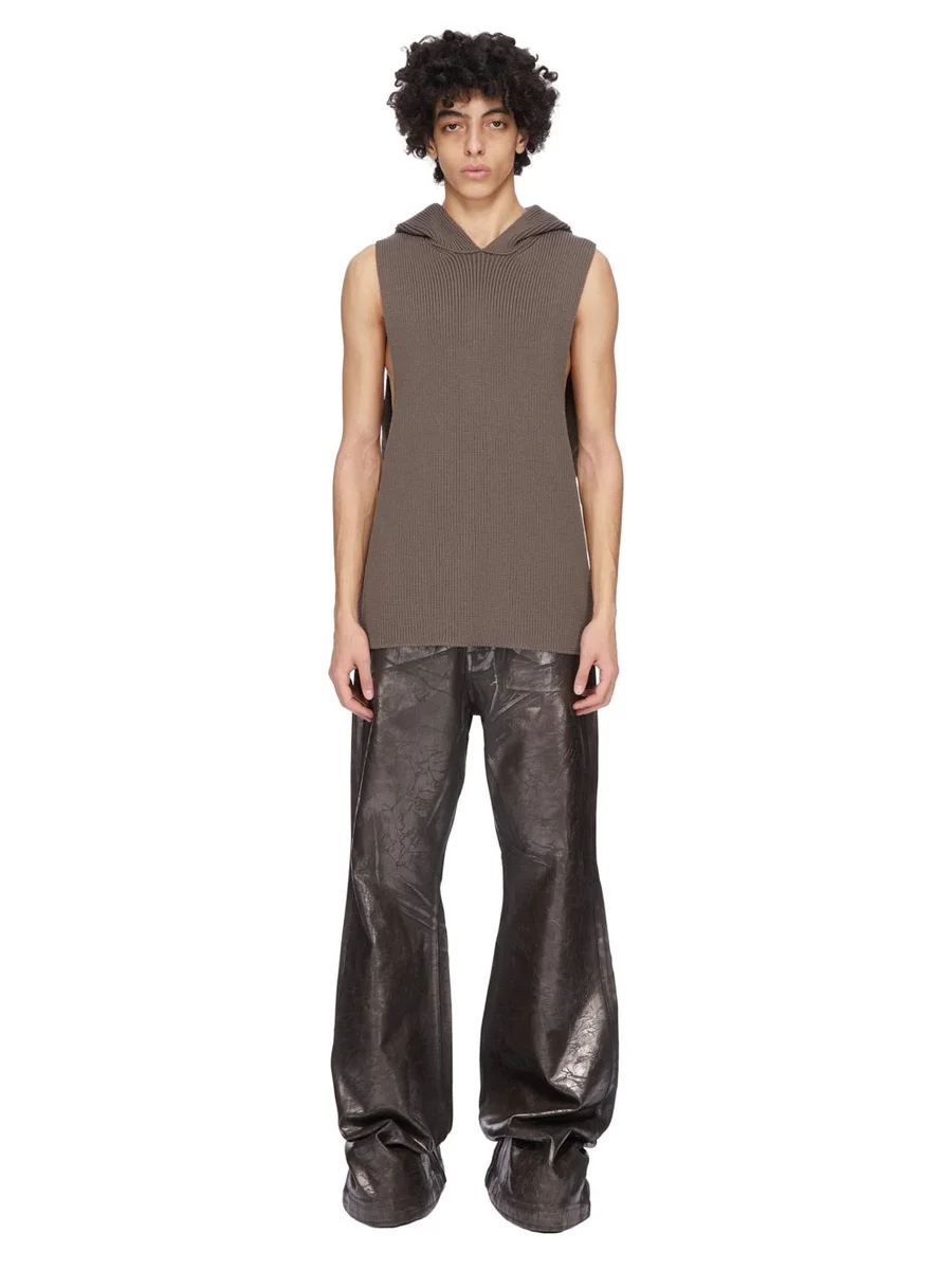 RICK OWENS FW25 CONCORDIANS RUNWAY HOODED TANK IN DARKDUST WOOL