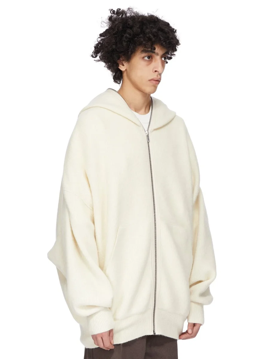 RICK OWENS FW25 CONCORDIANS RUNWAY GIMP HOODIE IN MILK ALPACA KNIT