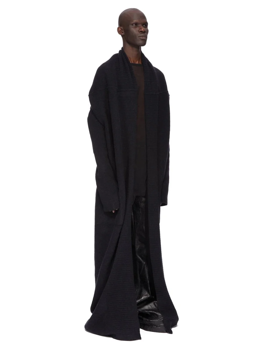 RICK OWENS FW25 CONCORDIANS RUNWAY LONG CARDIGAN IN BLACK ALPACA KNIT