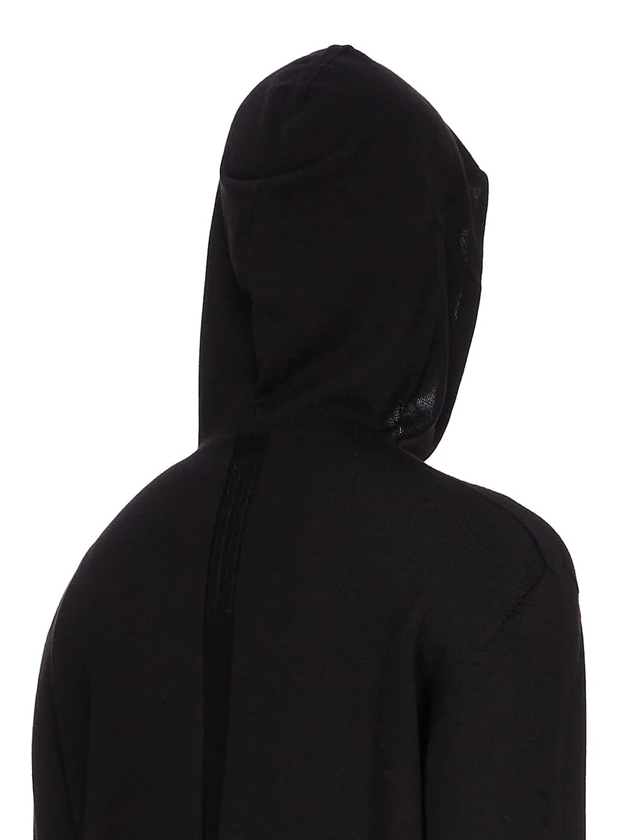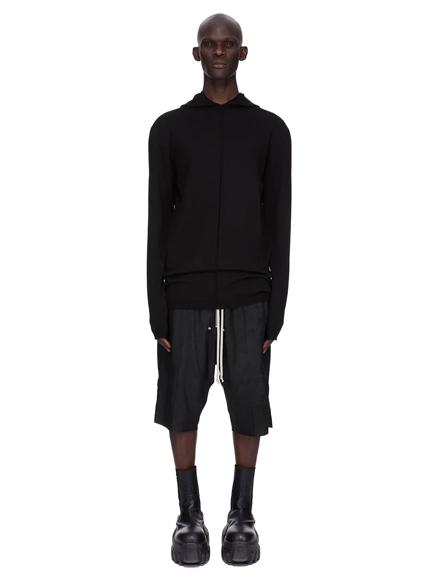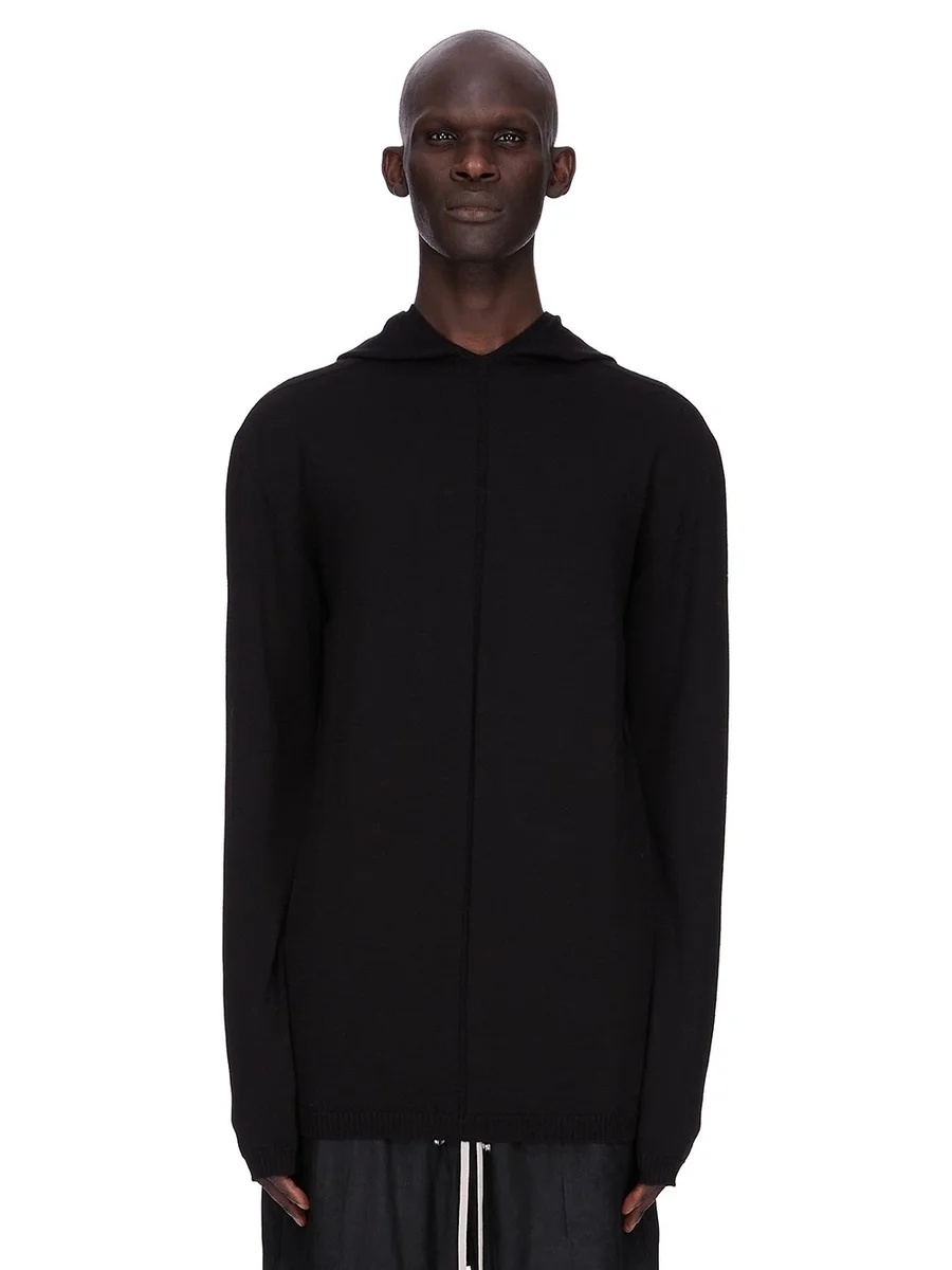 RICK OWENS FW25 CONCORDIANS OVERSIZED HOODIE IN BLACK LIGHTWEIGHT RASATO KNIT