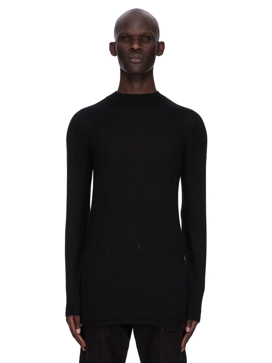 RICK OWENS FW25 CONCORDIANS LEVEL LUPETTO IN BLACK LIGHTWEIGHT CASHMERE KNIT