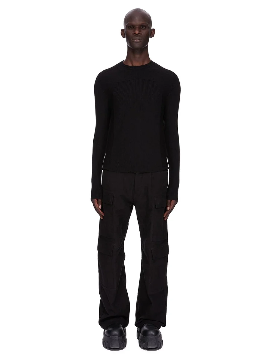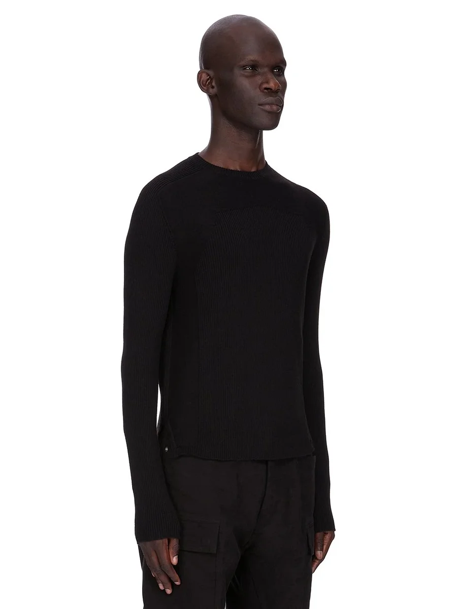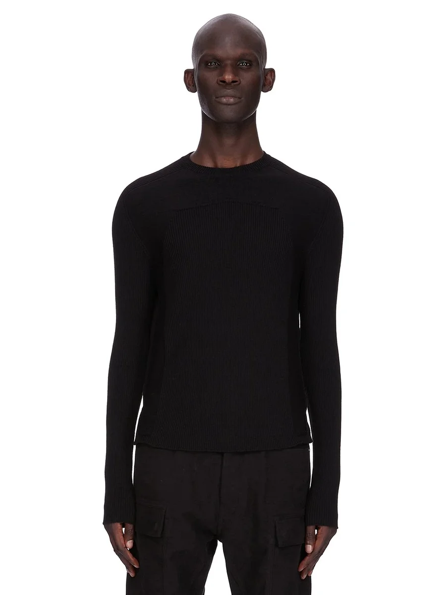 RICK OWENS FW25 CONCORDIANS RIBBED GEO IN BLACK RIBBED KNIT
