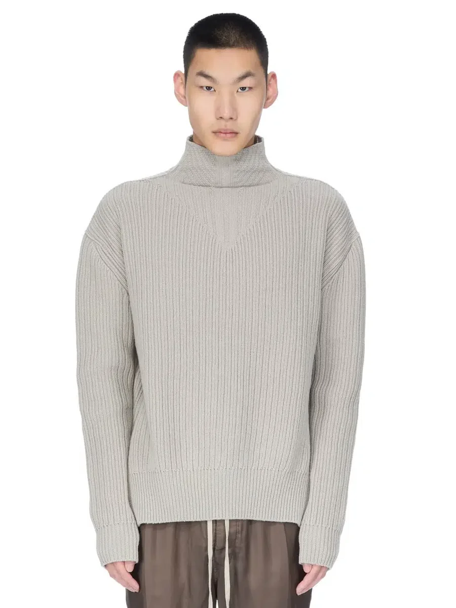 RICK OWENS FW25 CONCORDIANS TURTLE NECK IN PEARL HEAVY WOOL KNIT