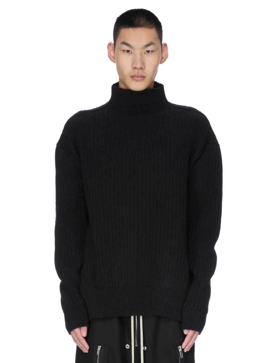 RICK OWENS FW25 CONCORDIANS TURTLE NECK IN BLACK HEAVY WOOL KNIT
