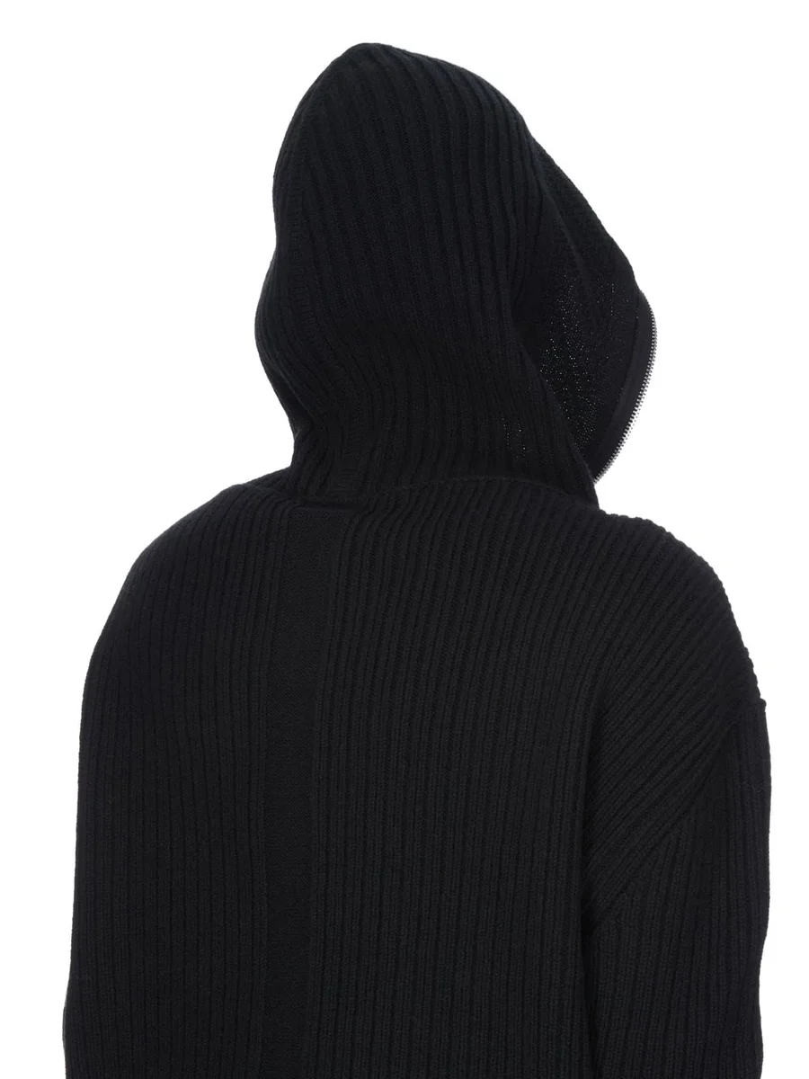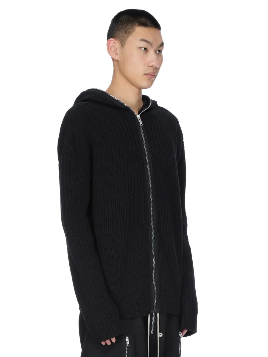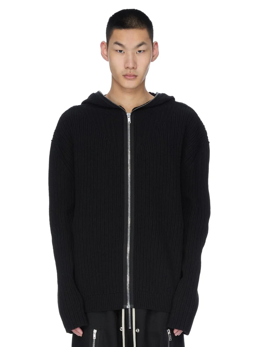 RICK OWENS FW25 CONCORDIANS ZIPPED HOODIE IN BLACK HEAVY WOOL KNIT