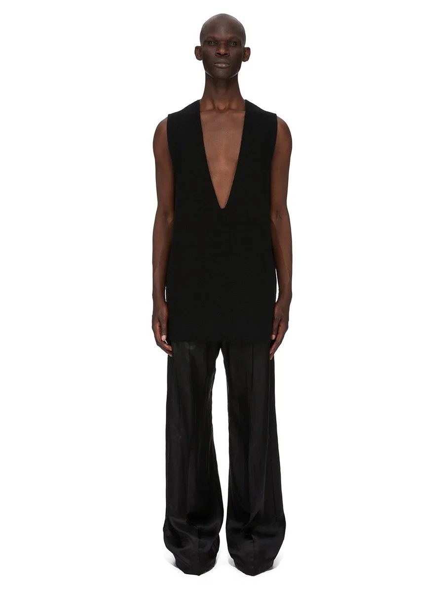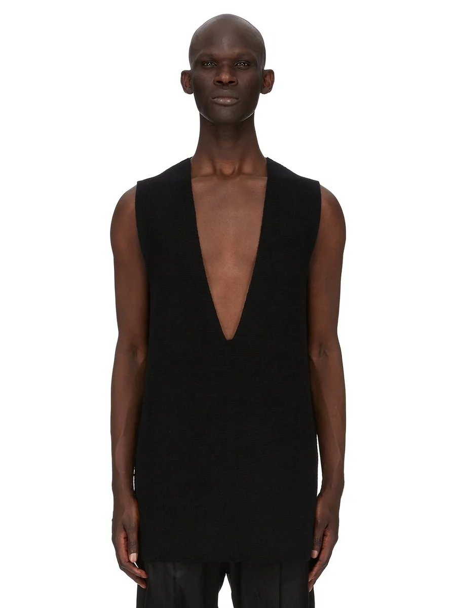 RICK OWENS FW25 CONCORDIANS V TANK IN BLACK RECYCLED CASHMERE