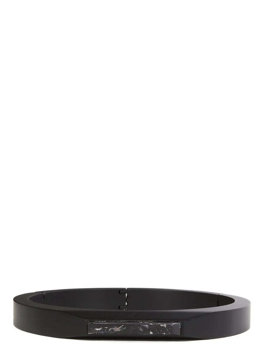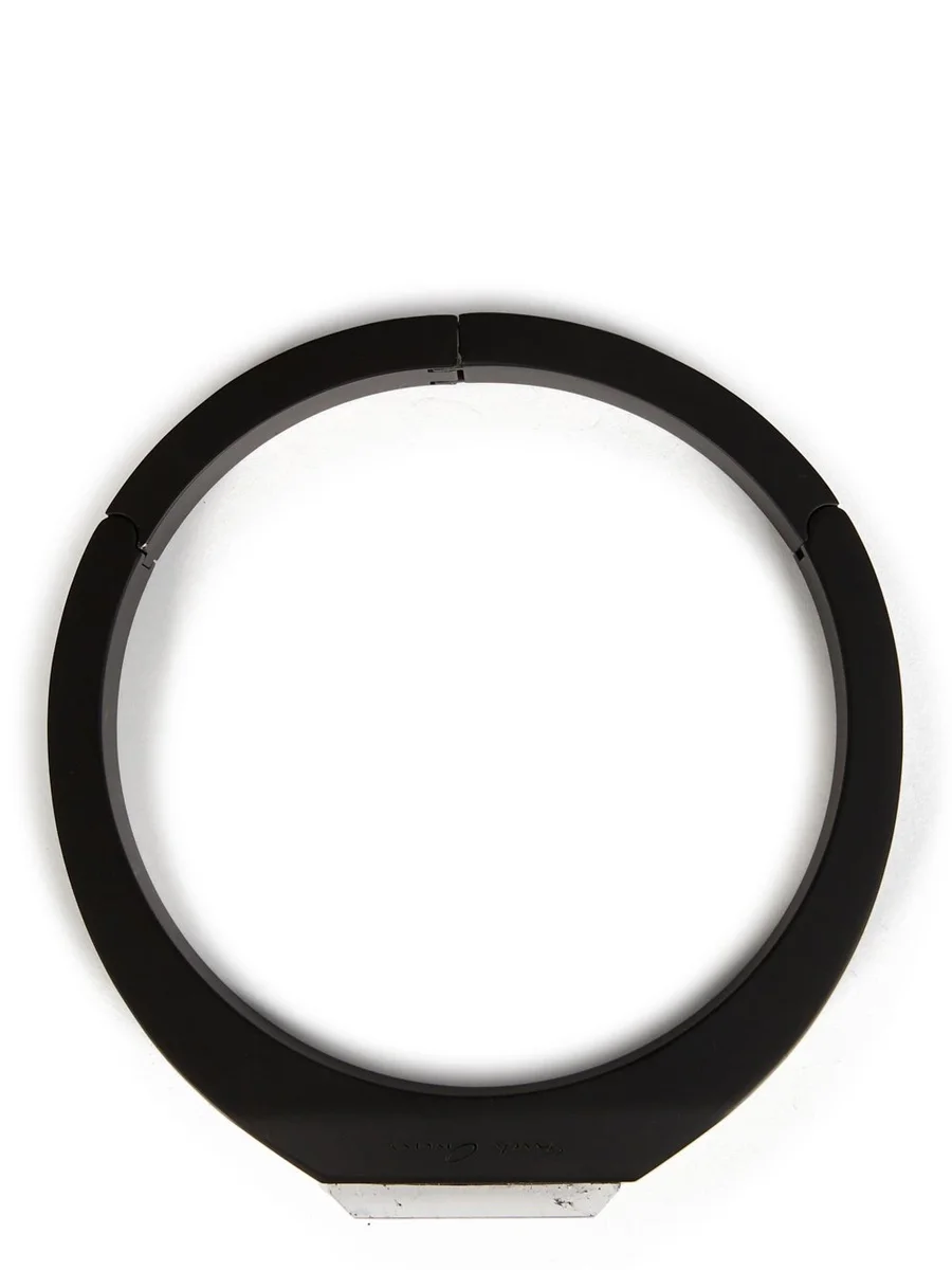 THIS BEVELED CHOKER IS A RIGID METAL CUFF WITH BEVELED EDGES. IT HAS A SOLID INTERIOR, A MAGNETIC CLASP SIDE CLOSURE AND THE RICK OWENS LOGO ENGRAVED IN THE SIDE FACE.