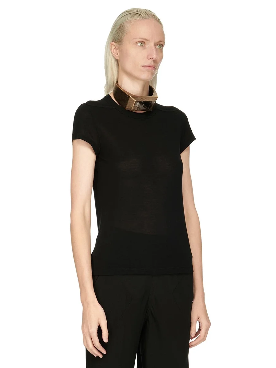 THIS CRYSTAL BEVELED CHOKER NECKLACE IS A SOLID METAL CHOKER WITH BEVELED EDGES ORNAMENTED WITH A SMOKEY QUARTZ CRYSTAL STONE. IT HAS A MAGNET CLASP CLOSURE IN THE BACK AND THE RICK OWENS LOGO ENGRAVED IN THE SIDE FACE.