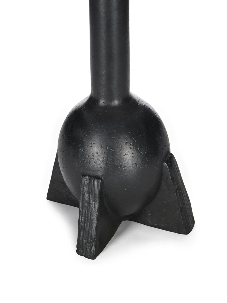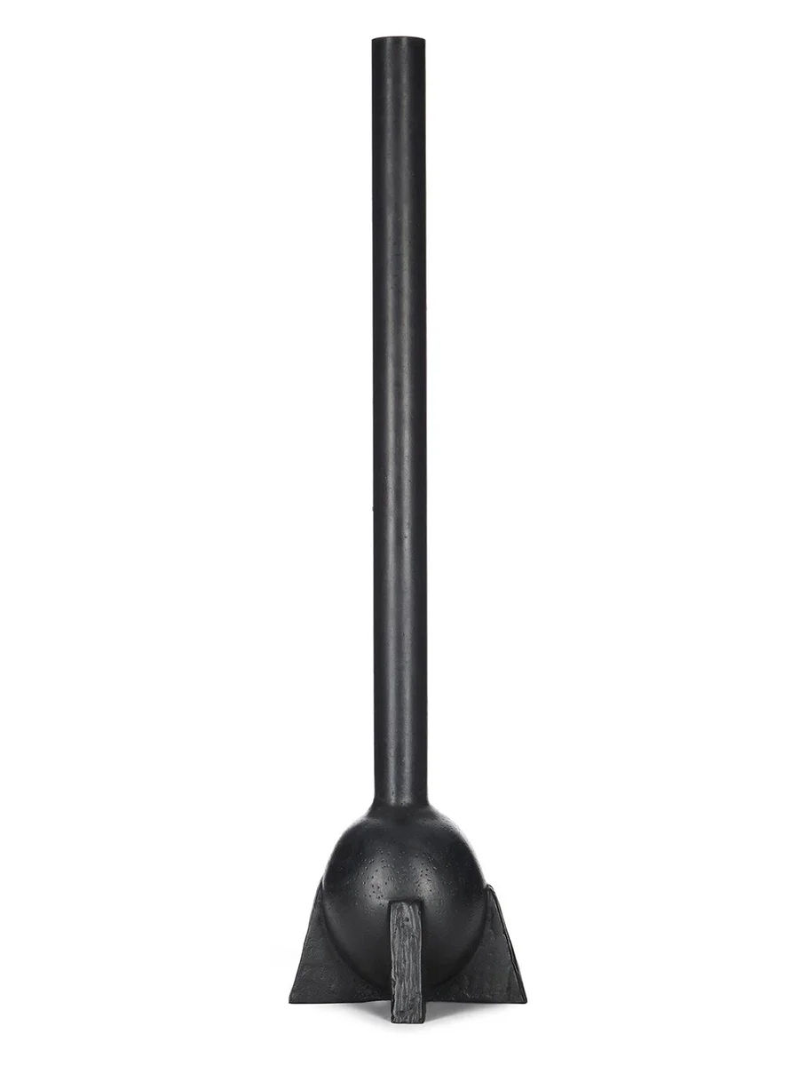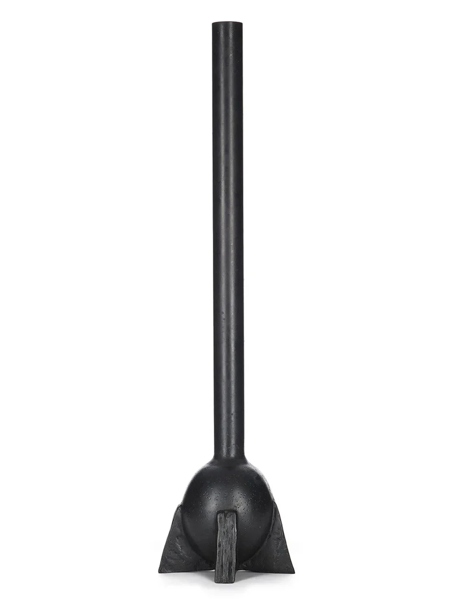RICK OWENS SWAN NECK VASE IN BLACK BRONZE HAS AN OVAL SHAPE, FEATURES A SLIM AND LONGNECK, FOUR LEGS AND A RELATIVELY POLISHED SURFACE.