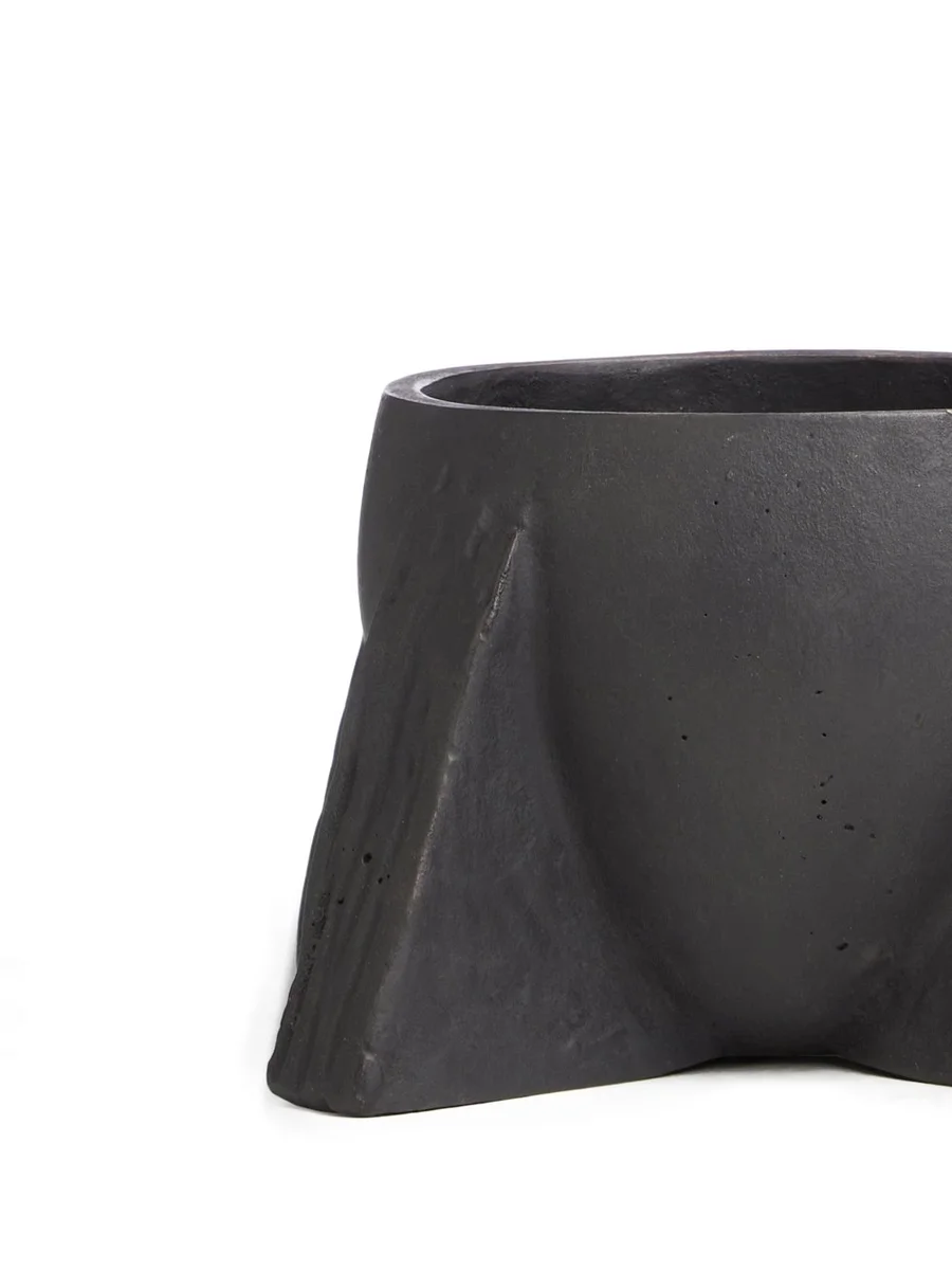 RICK OWENS COUPE IN BLACK BRONZE HAS AN HALF-OVAL SHAPE, FEATURES FOUR LEGS AND SLIGHTLY IRREGULAR SURFACE.