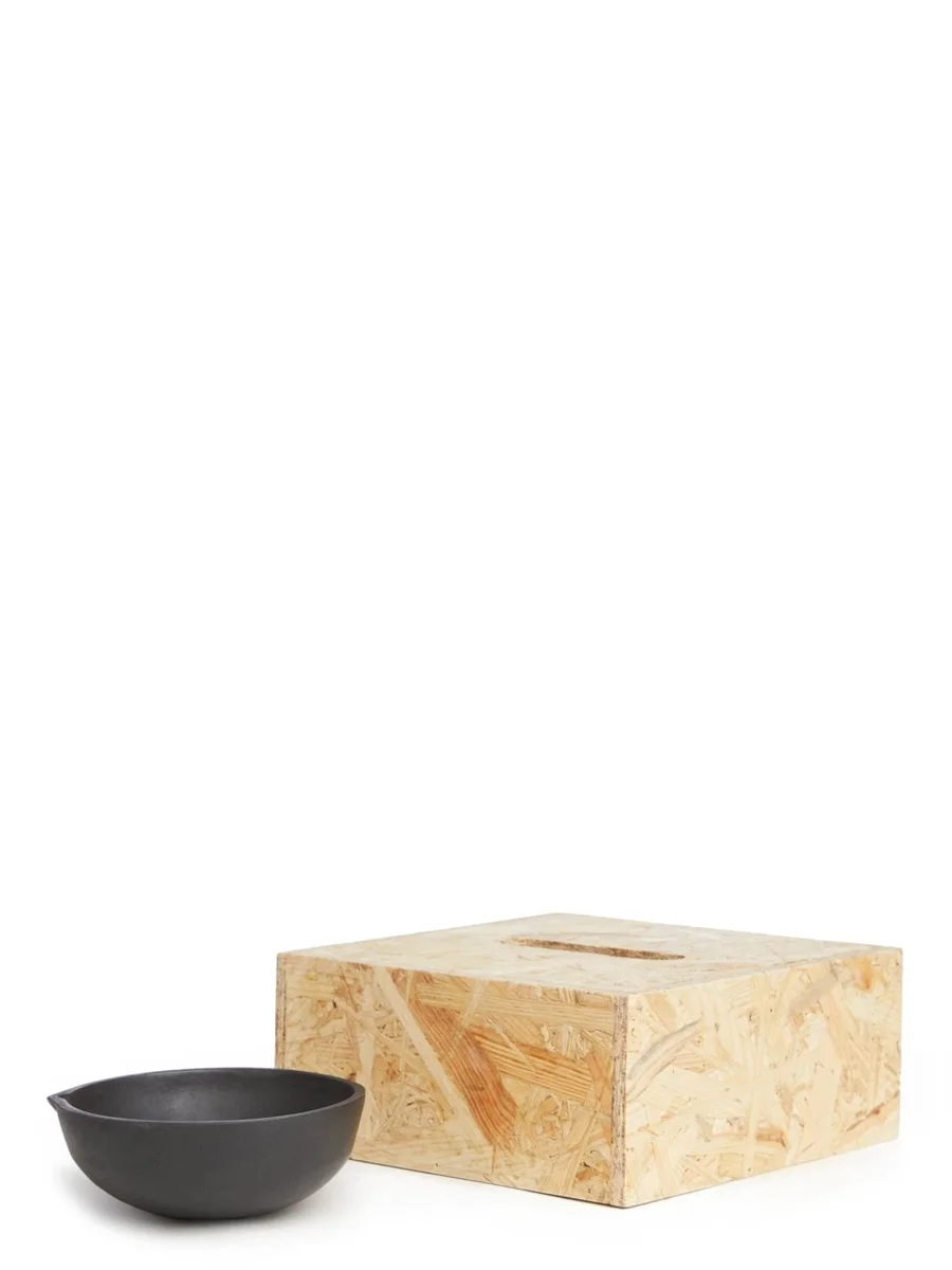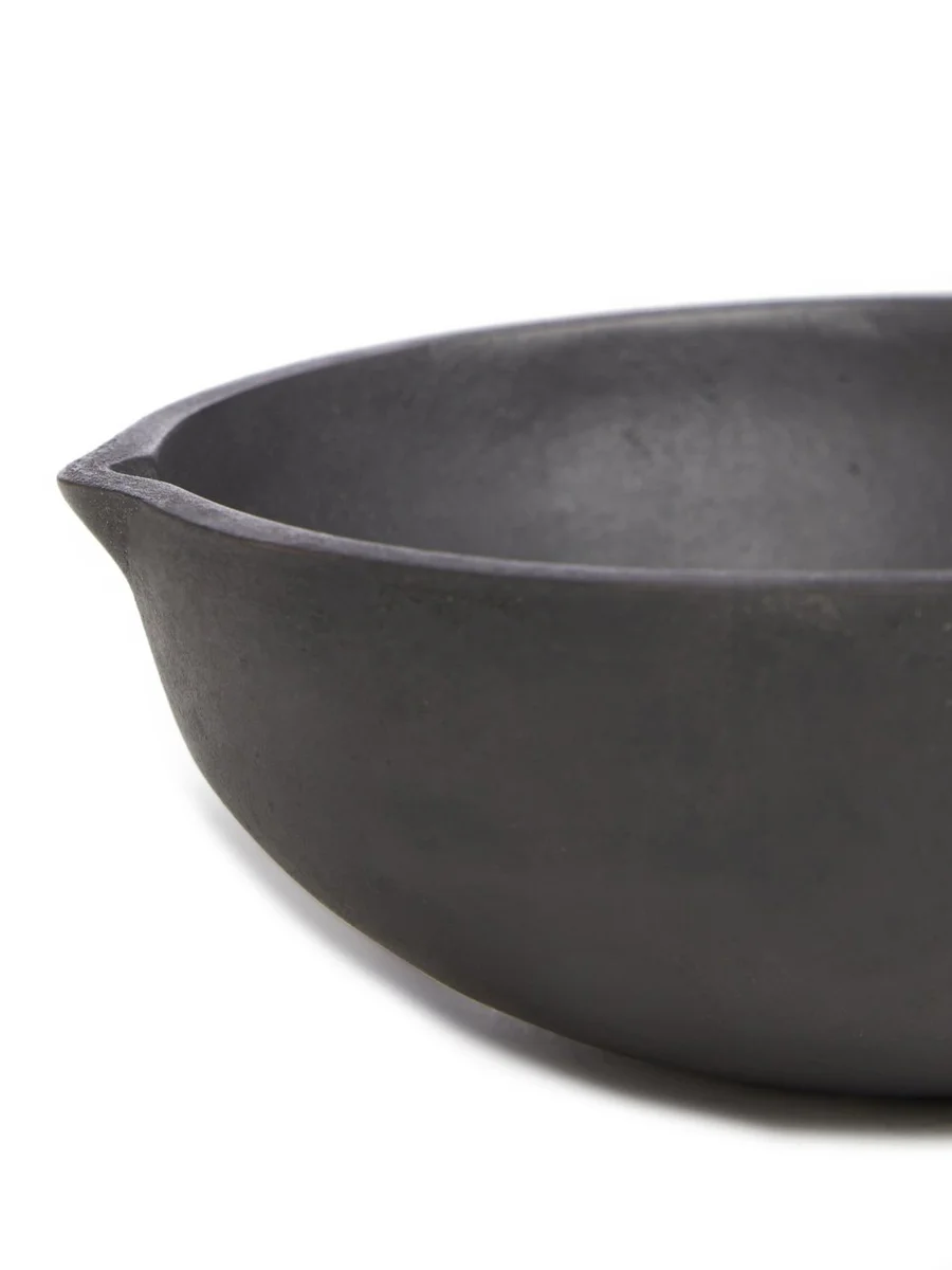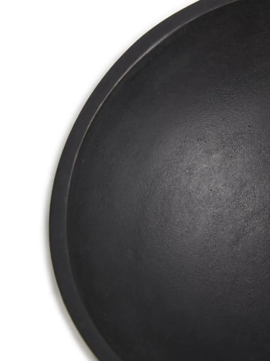 RICK OWENS BOWLHAS A ROUND SHAPE AND FEATURES A SMALL TRIANGLE DETAIL ANDPOLISHED SURFACE.