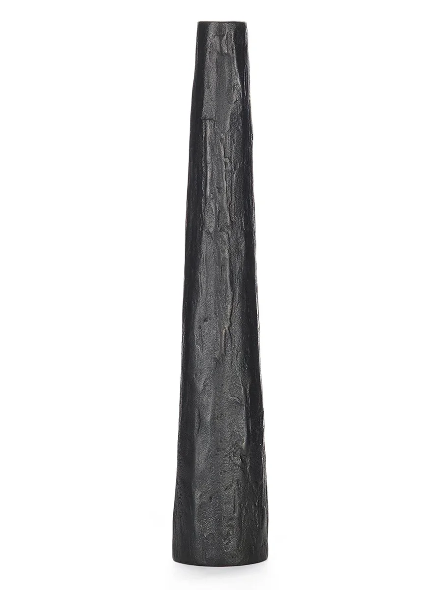 RICK OWENS GRANDE CANDLE PILLAR IN BLACK BRONZE HAS A SLIM FRUSTOCONCIAL SHAPEAND FEATURES A SLIGHTLY IRREGULAR SURFACE.