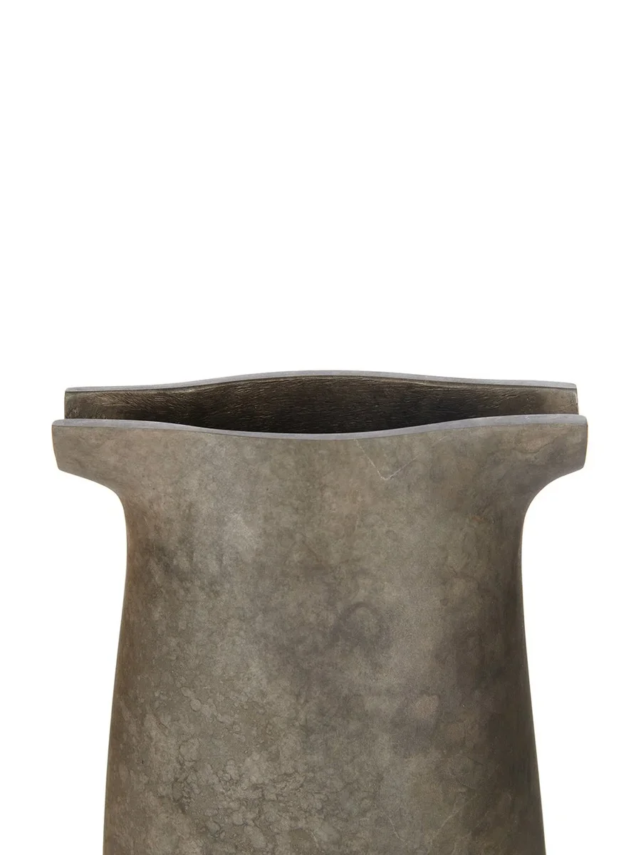 RICK OWENS CARAFE LIPS IN BRONZE IS AN IRREGULAR FROSTOCONICAL SHAPE CONTAINER, FEATURES A WIDE LIP SHAPE NECK AND POLISHED SURFACE.