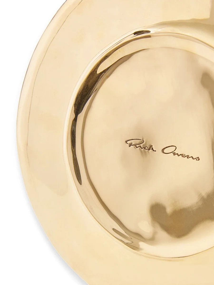 THIS SMALL PLATE IN CRAFTED IN BRONZE FEATURES A ROUND SHAPE, A POLISHED SURFACE AND ENGRAVED “RICK OWENS” SIGNATURE LOGO ON THE BOTTOM.