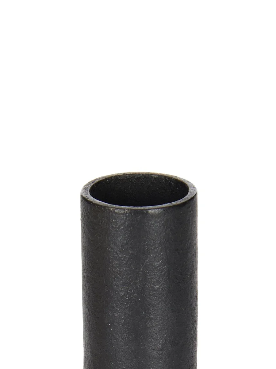 RICK OWENS SMALL DUCK NECK VASE IN BLACK BRONZE HAS AN OVAL NECK, A SHORT AND SLIM NECK, FOUR LEGS AND SLIGHTLY IRREGULAR SURFACE.